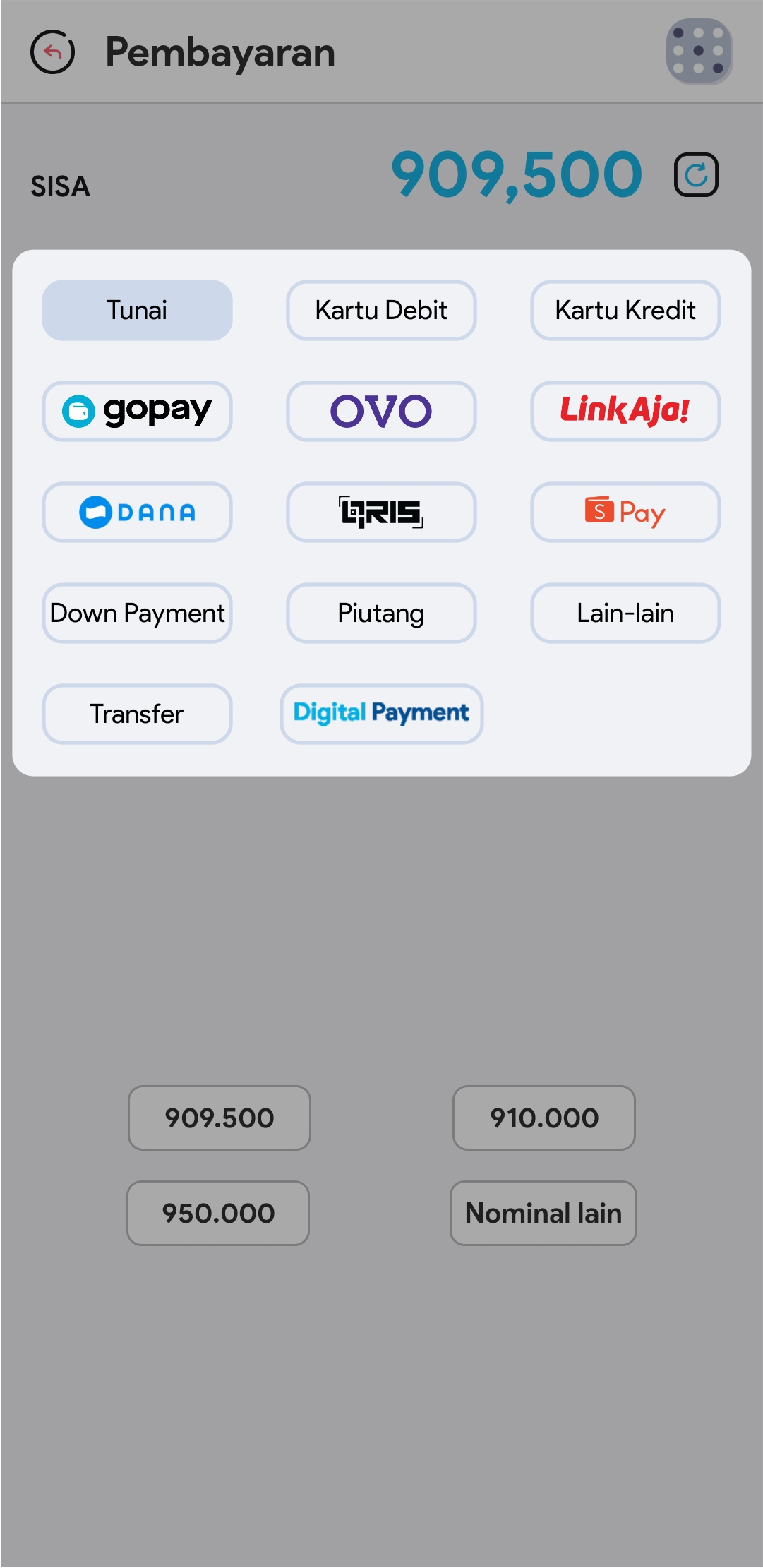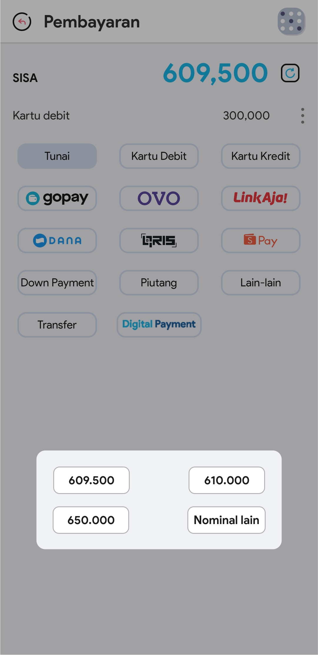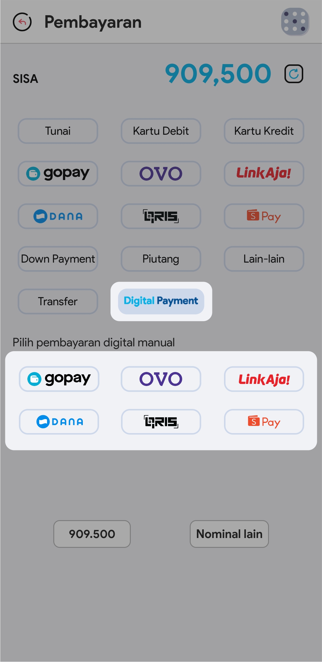 Gunakan tipe pembayaran Digital Payment untuk menerima semua tipe pembayaran digital dan mengelola saldo dari 1 dompet outlet
