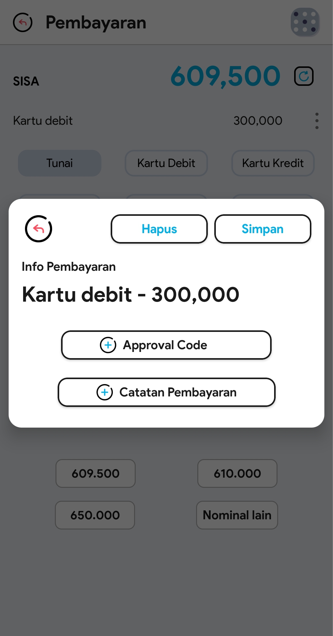 17. Catatan Pembayaran dan approval code (opsional) dapat digunakan sebagai pelengkap data pada tipe pembayaran kartu debit atau kartu kredit.