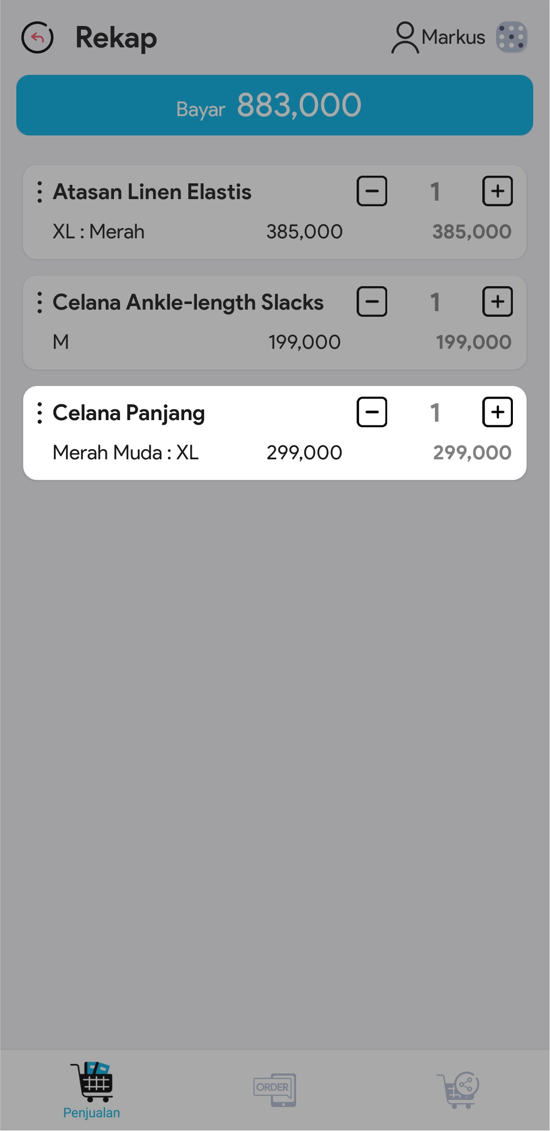Lakukan point no 4, 5, 6, 7 dan 8 untuk semua produk yang ingin ditransaksikan