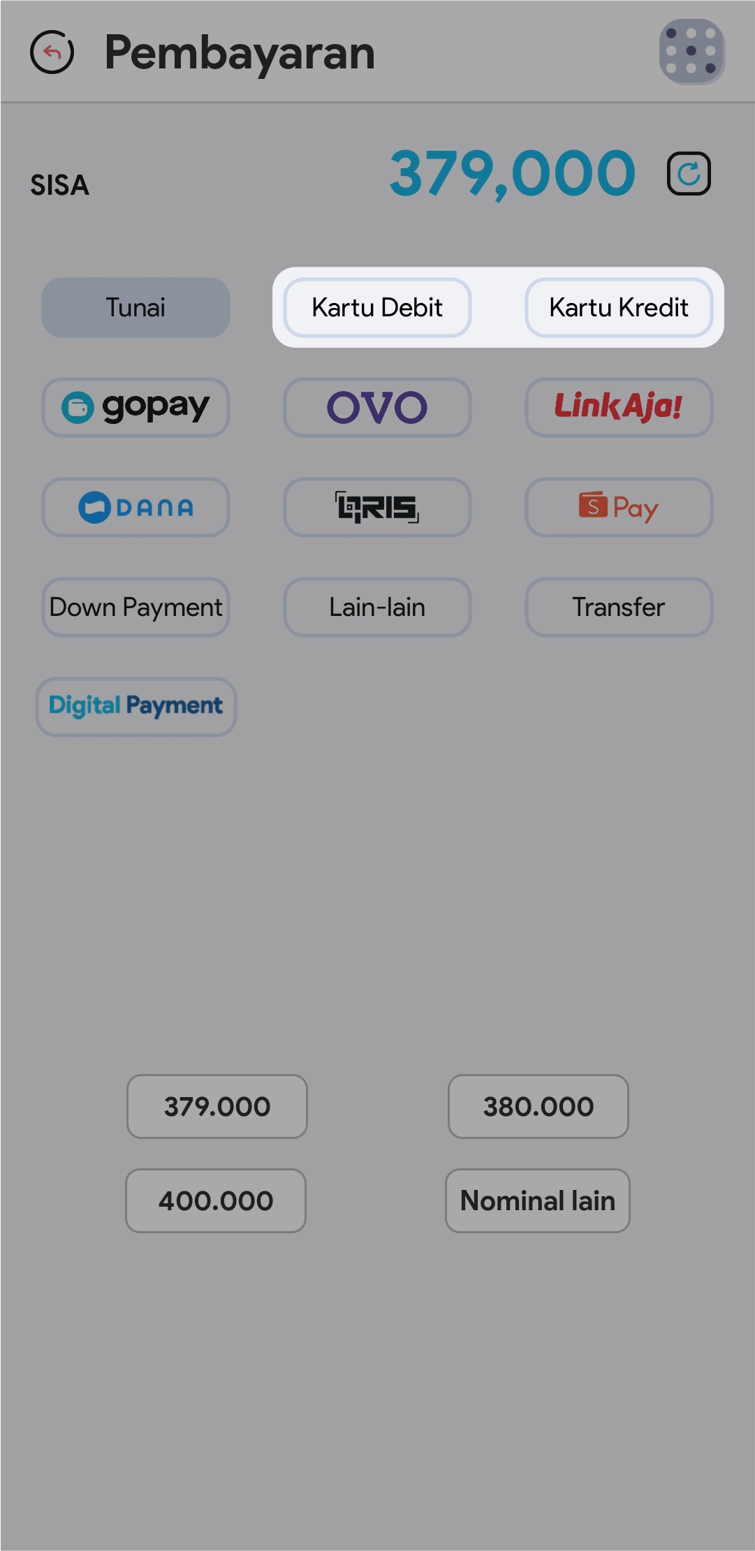 1. Pilih Tipe Pembayaran Kartu Kredit atau Kartu Debit