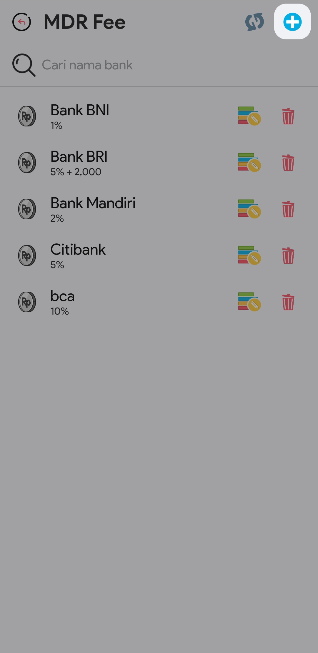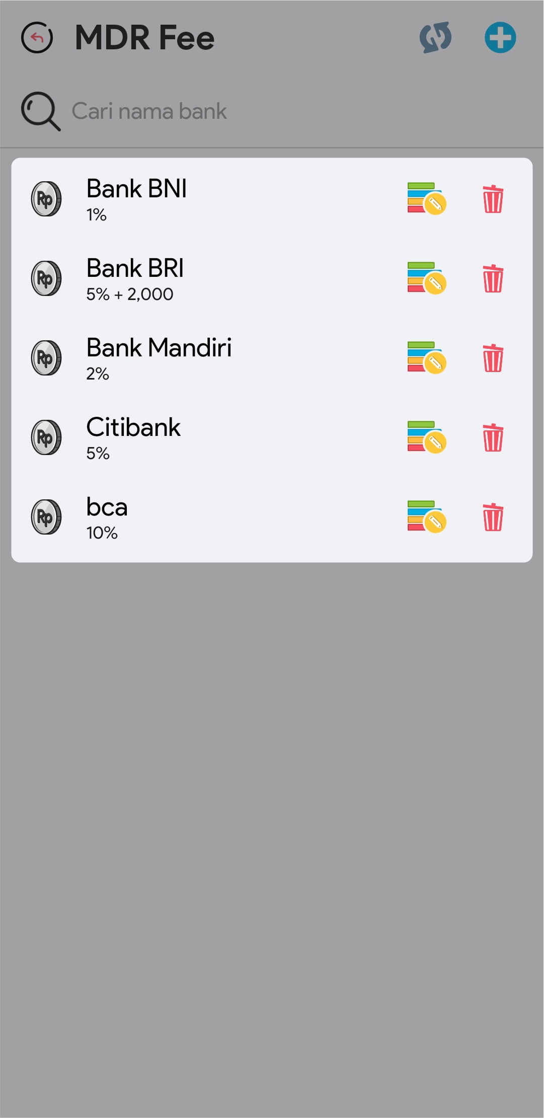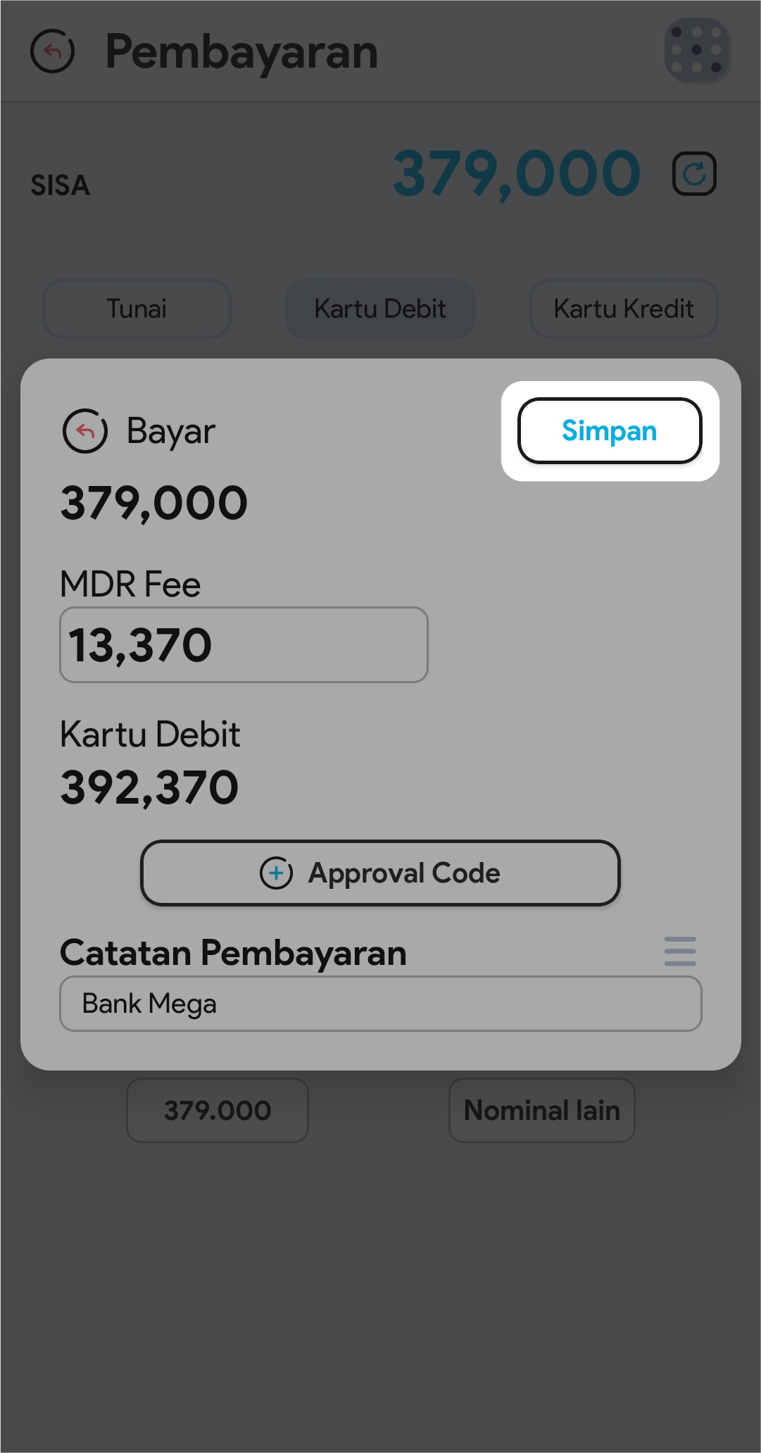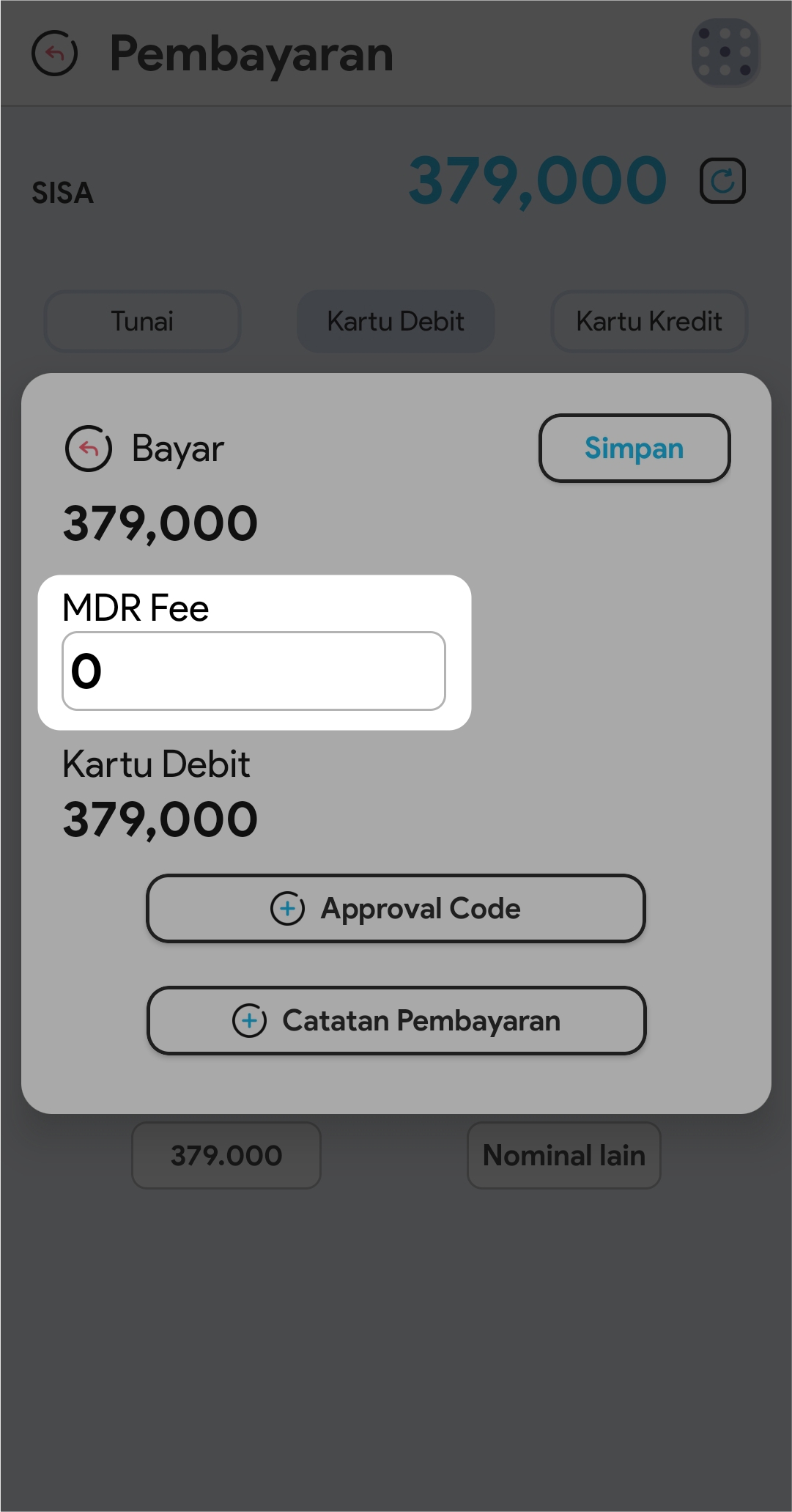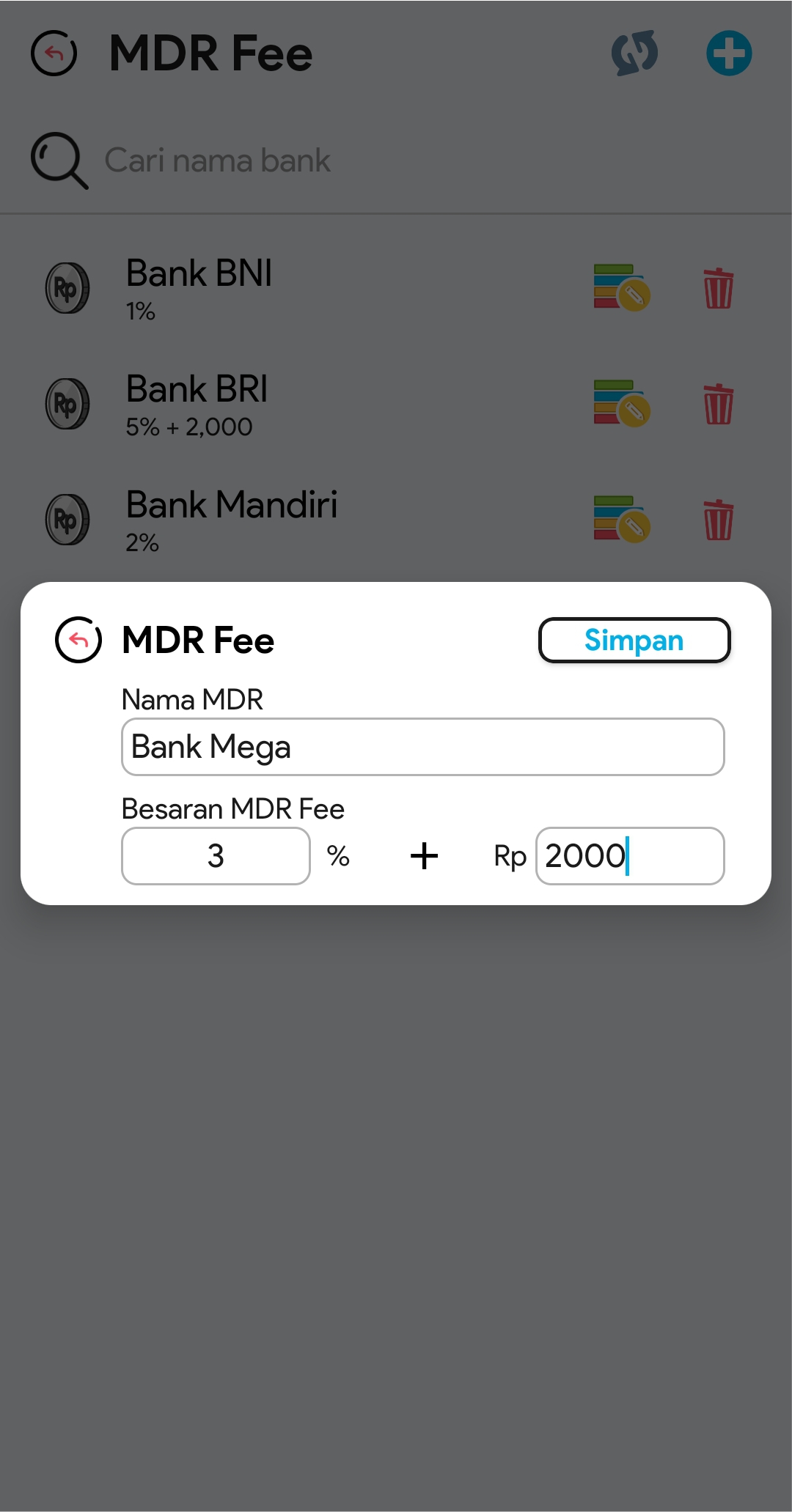 Penambahan Besaran MDR Fee dilakukan saat mencatatkan transaksi Penjualan pada fasilitas Penjualan. Besaran MDR Fee dapat dibuat berbeda-beda untuk setiap bank. Berikut caranya: