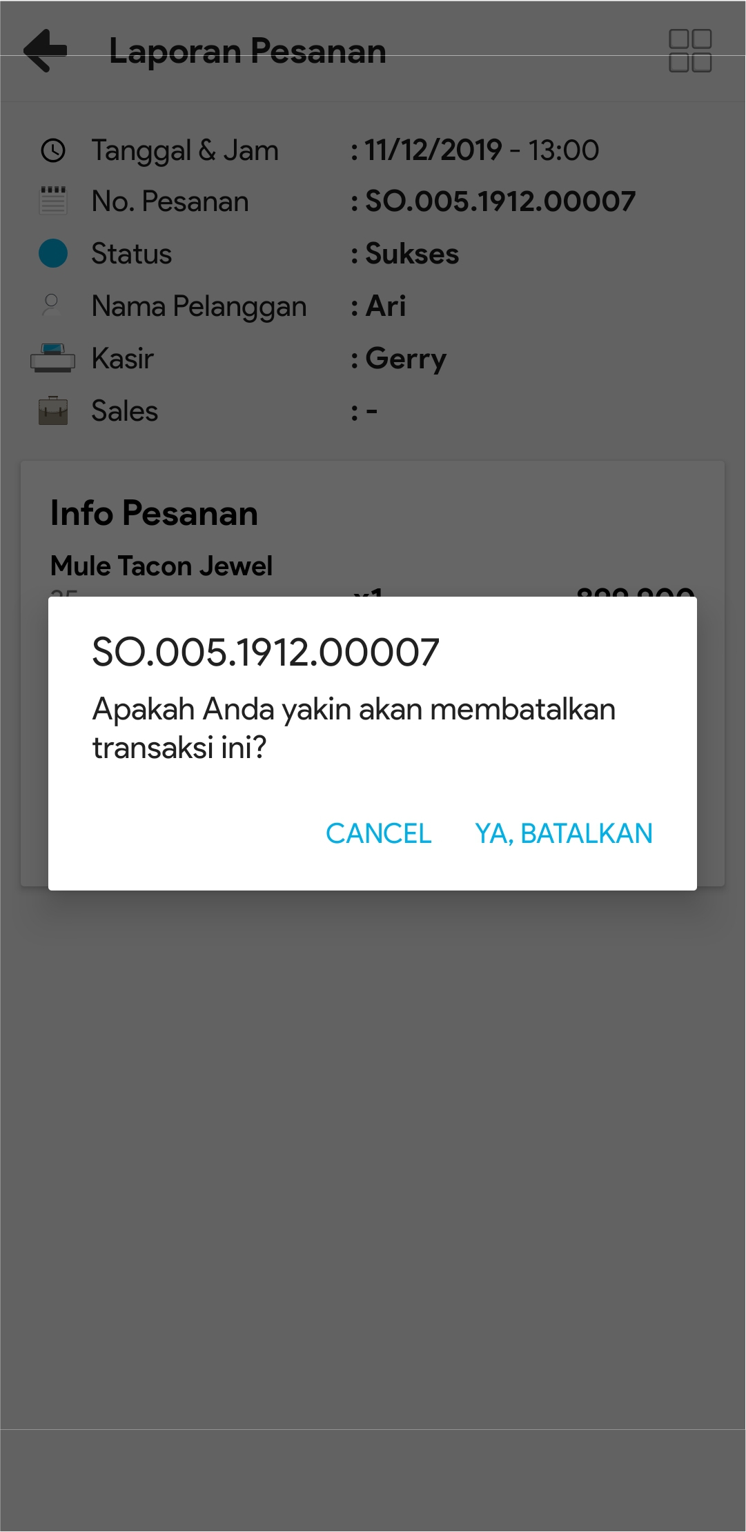 7. Lakukan konfirmasi pembatalan