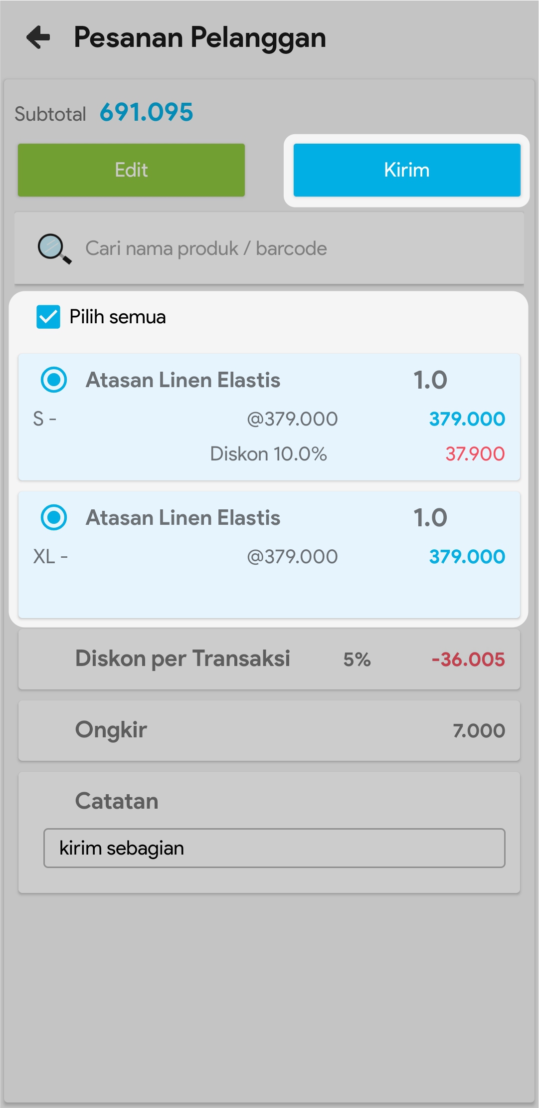 6. Pilih produk dan atur jumlah yang ingin ditransaksikan