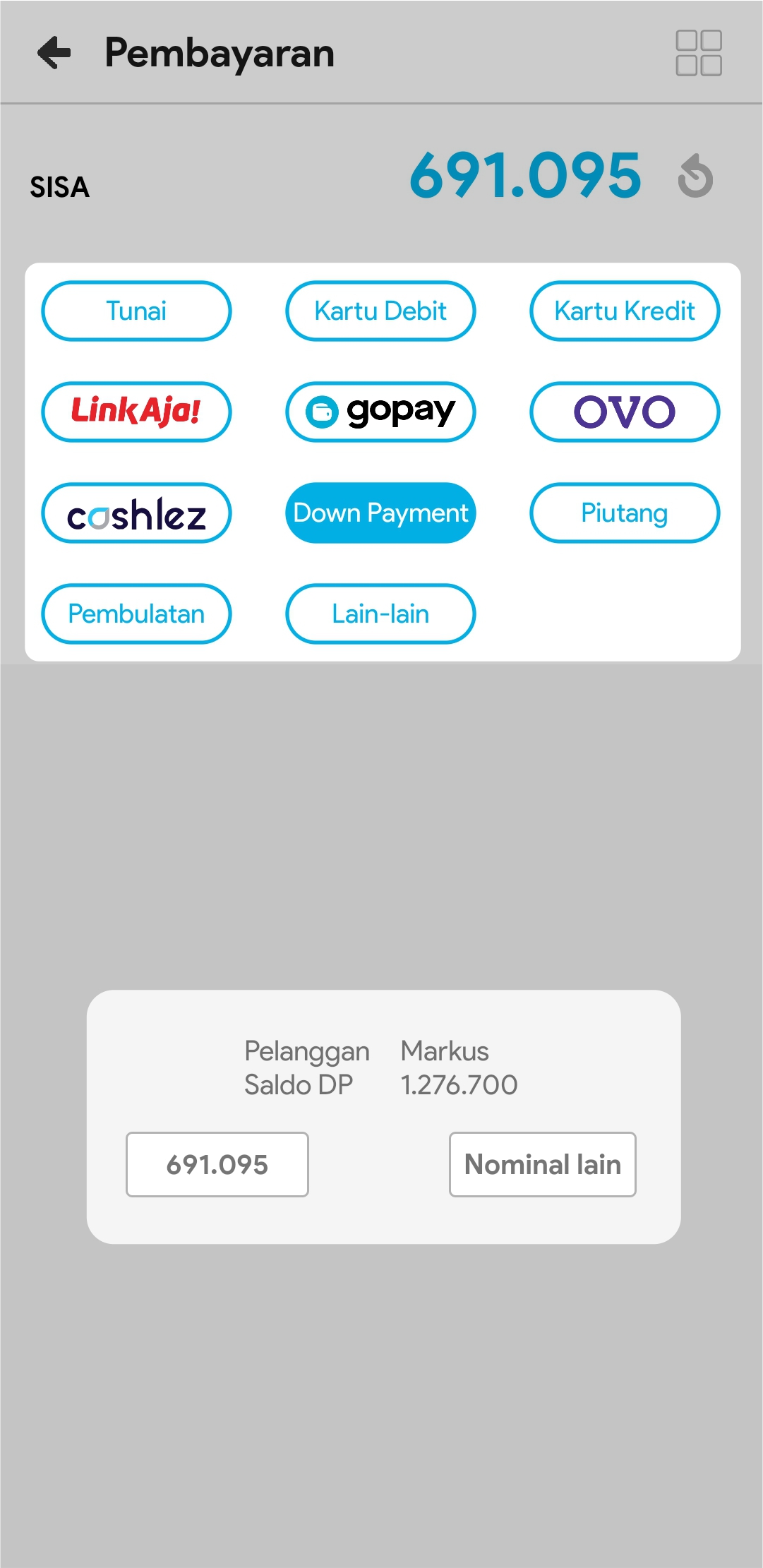 9. Pilih pembayaran menggunakan Down Payment jika sudah melakukan pembayaran sebelumnya