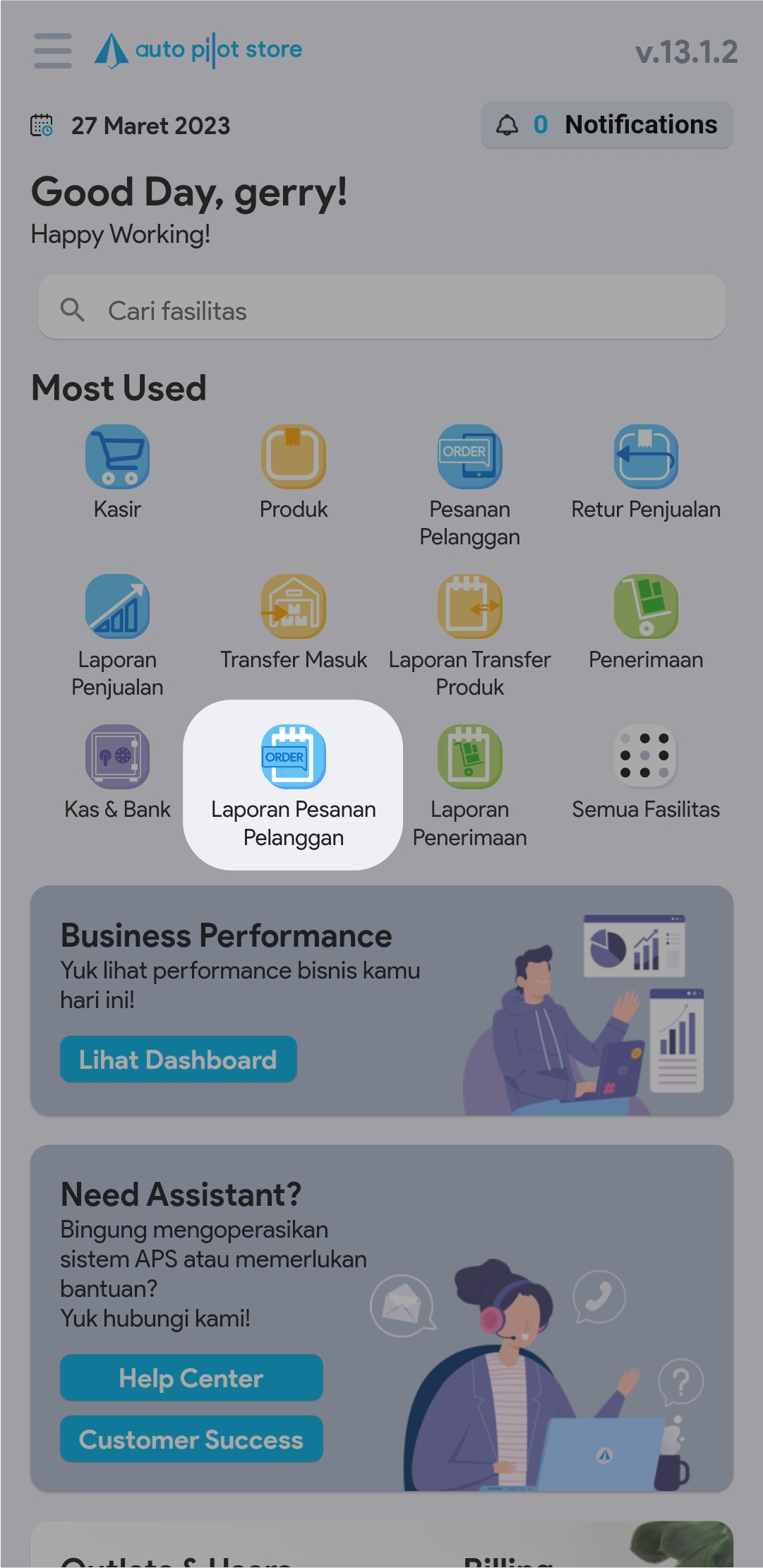 1.  Pilih Fasilitas Laporan Pesanan Pelanggan