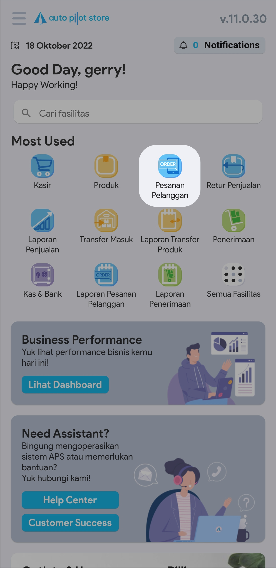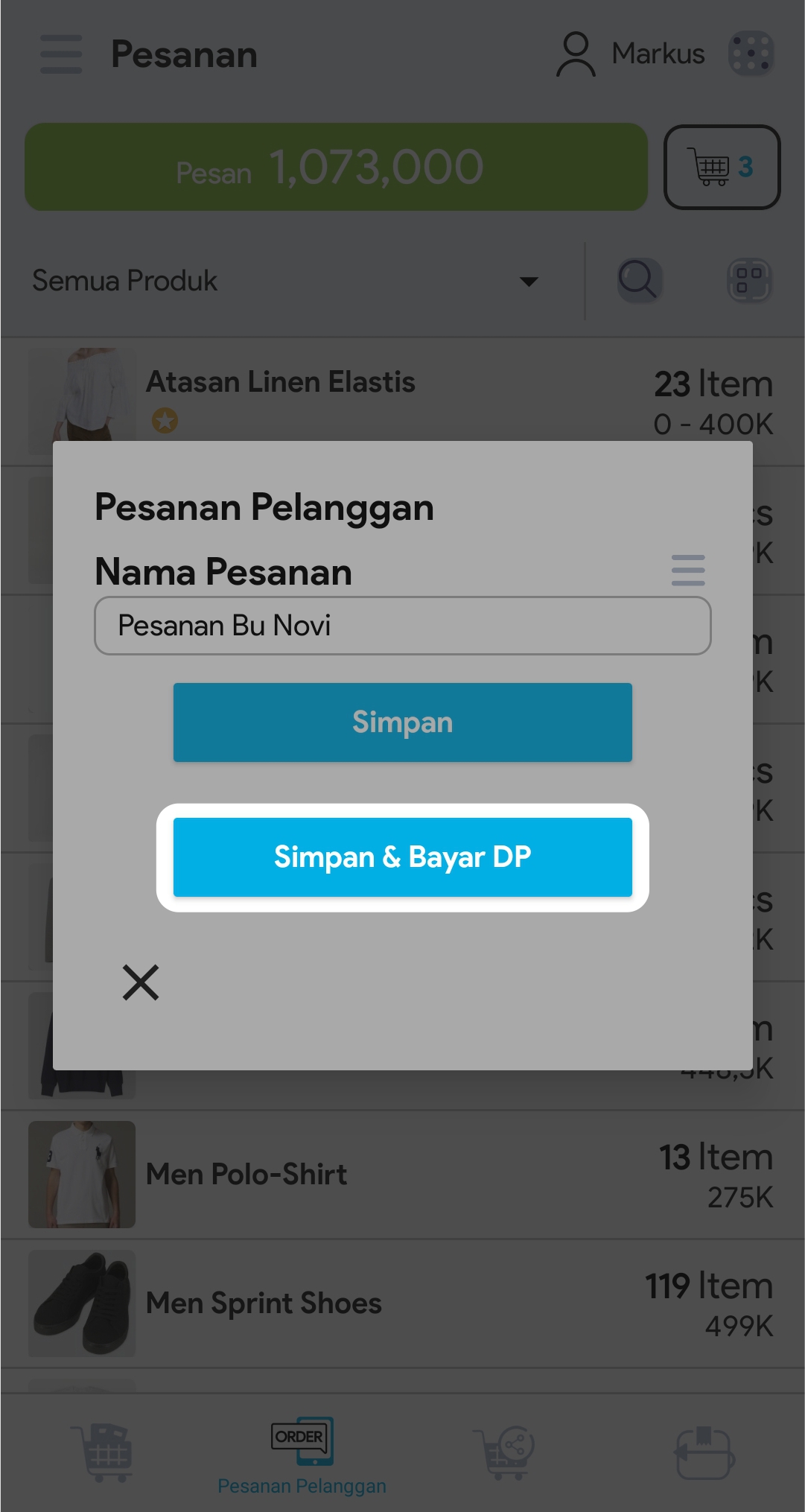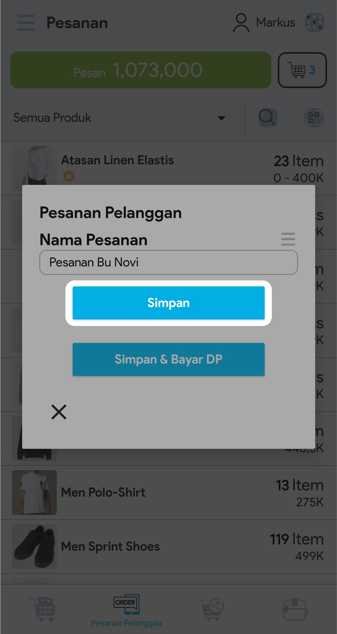 15. Pilih Simpan, transaksi pesanan pelanggan tersimpan berhasil atau
