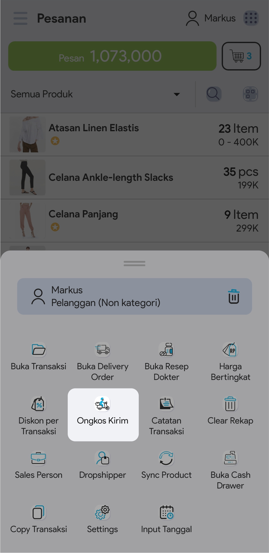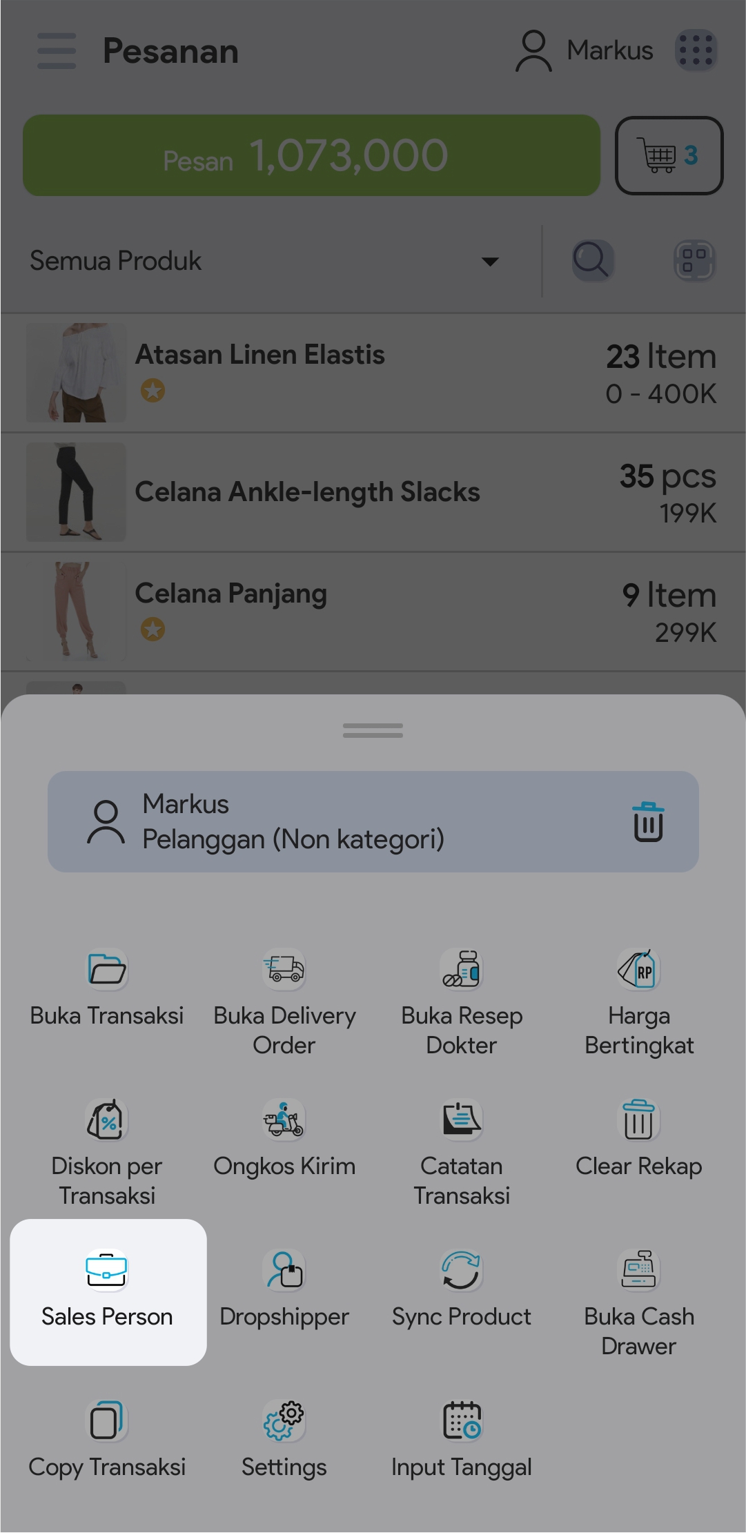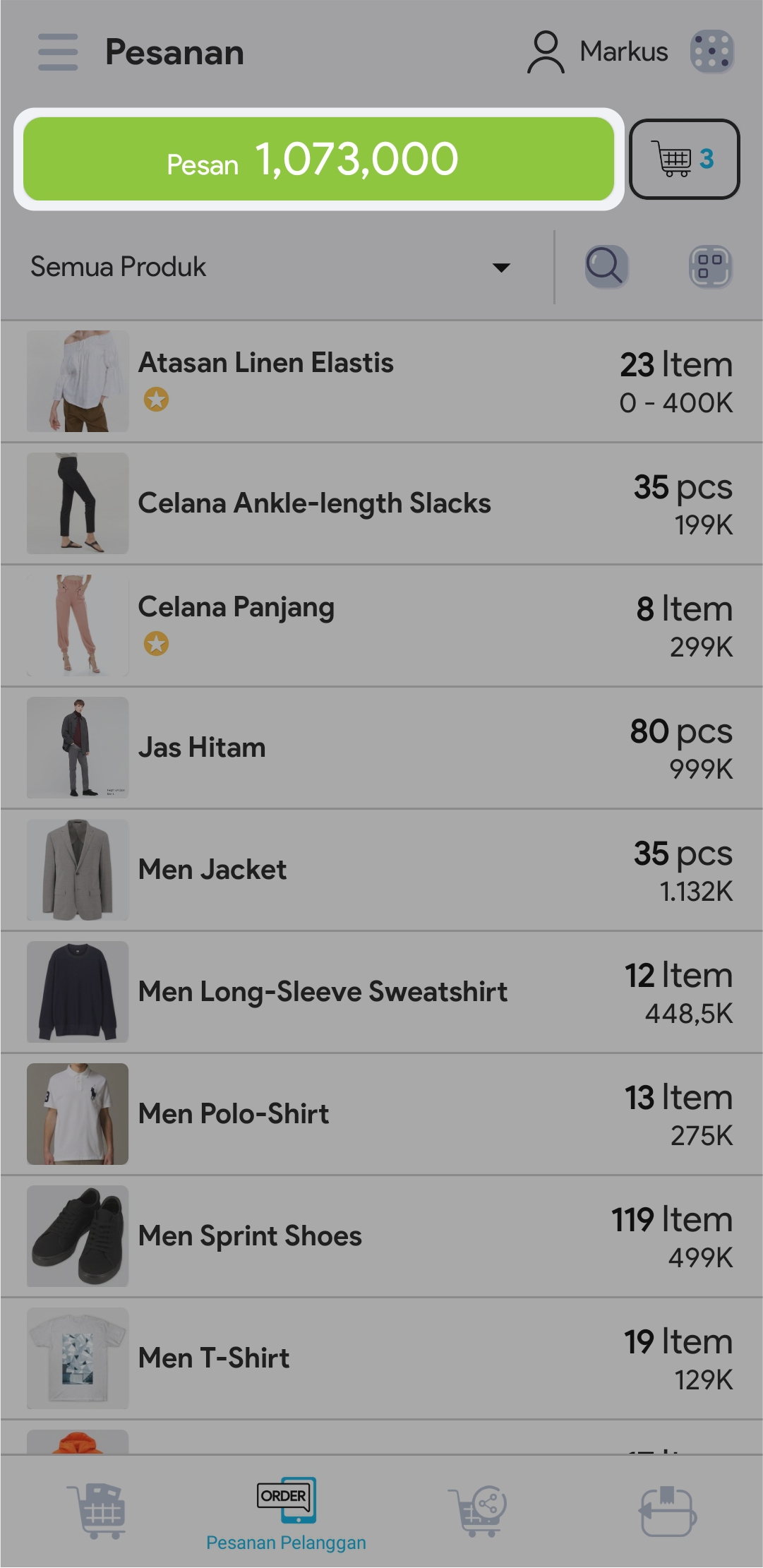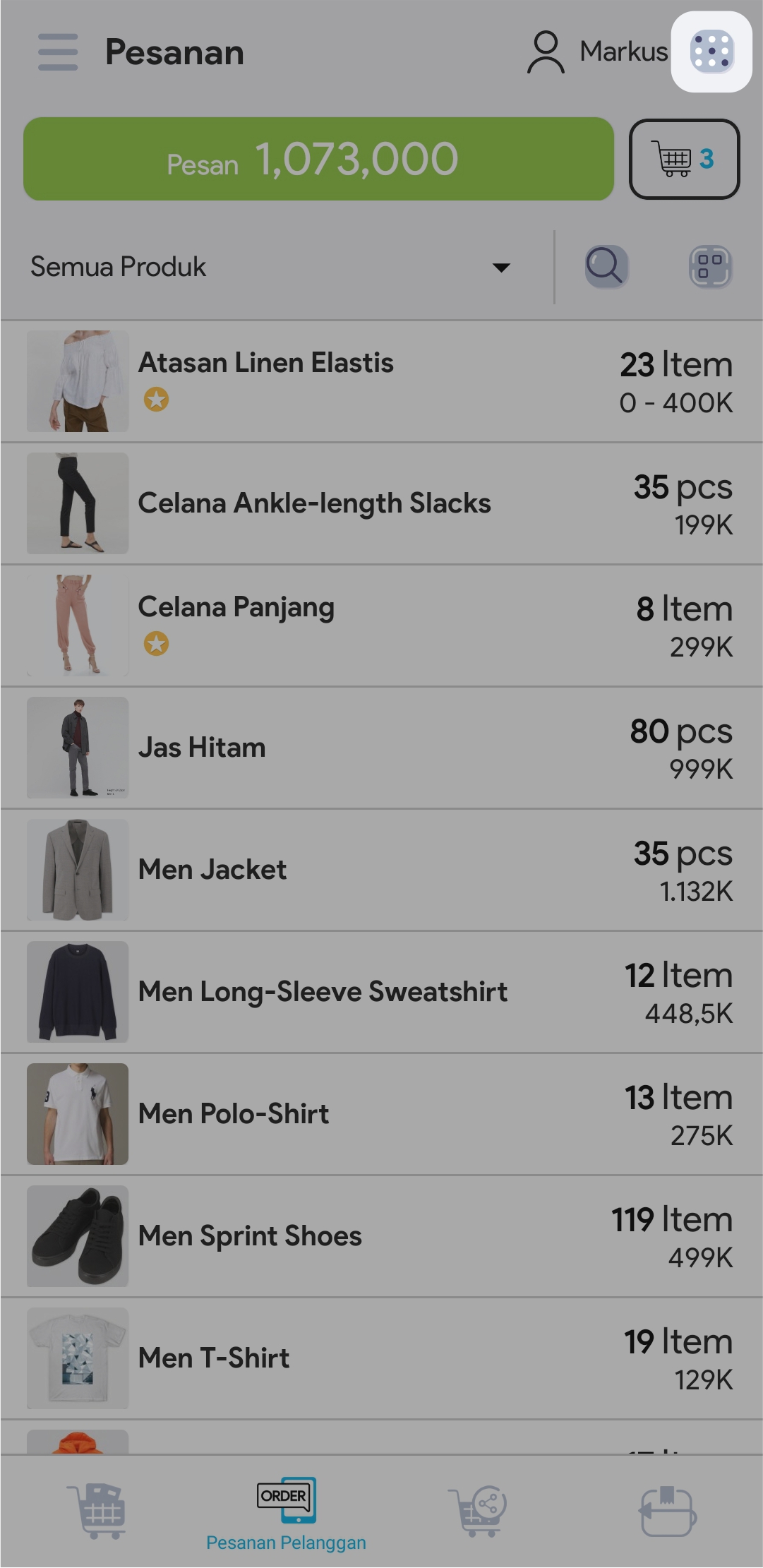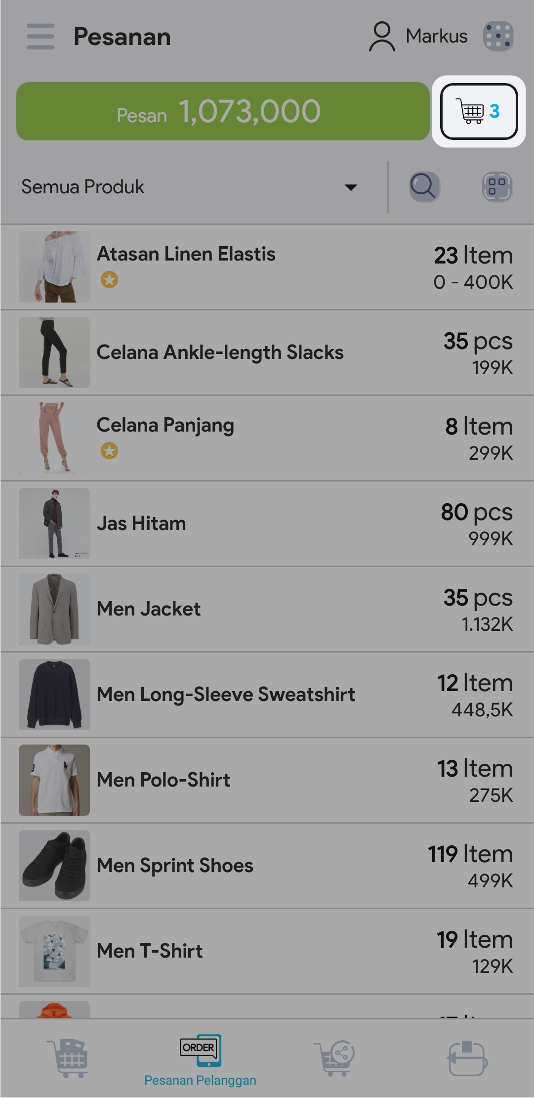 5. Masukkan jumlah produk dengan cara mengetuk produk sebanyak jumlah produk yang ingin ditransaksikan atau atur jumlah produk di icon Keranjang
