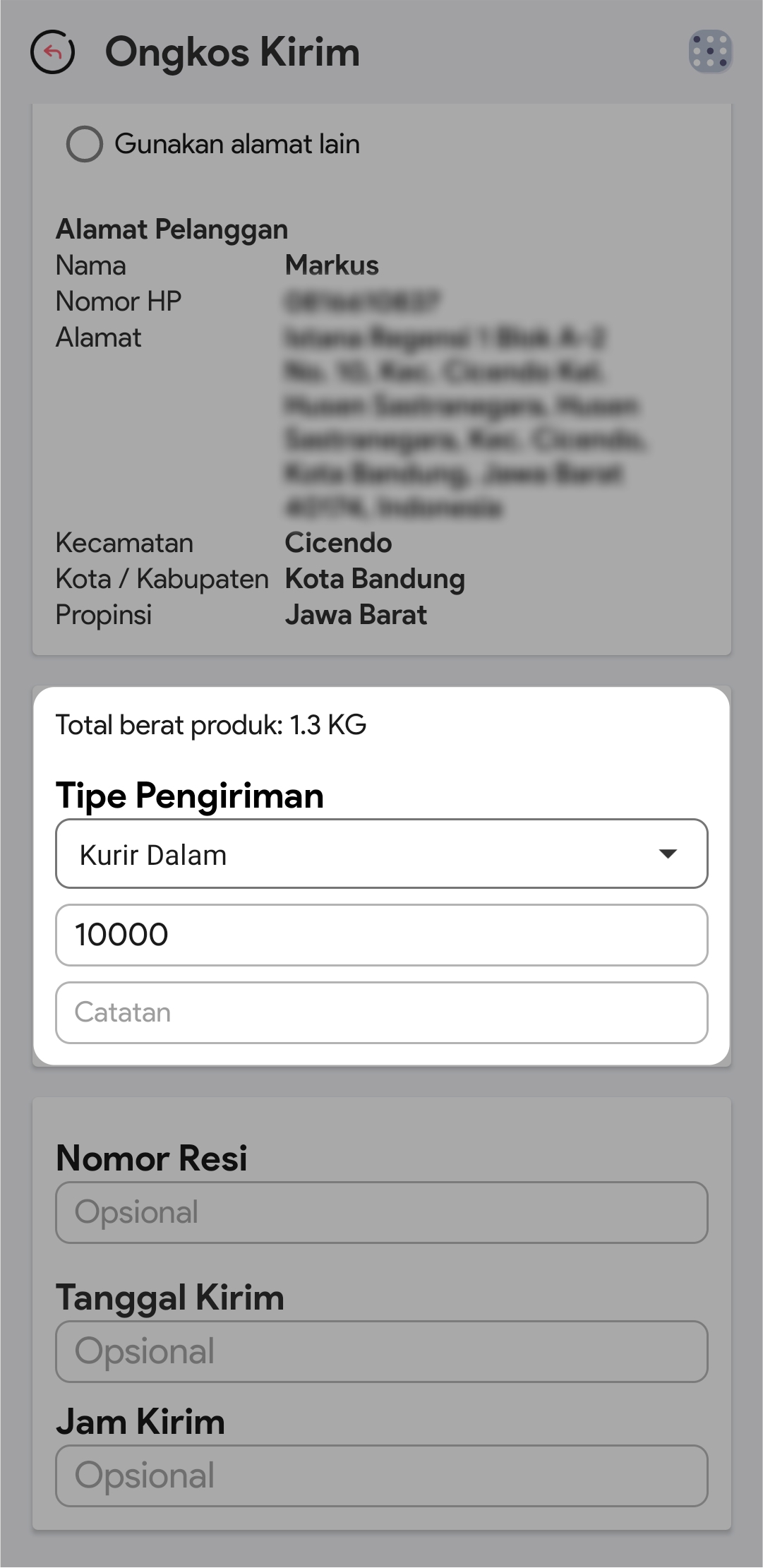 10. Pilih Ongkos Kirim jika ingin memasukkan biaya ongkos kirim. Anda dapat memilih: