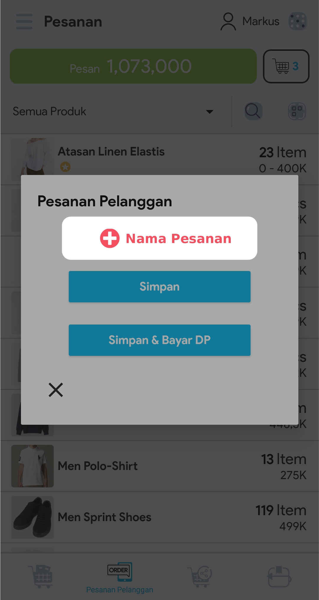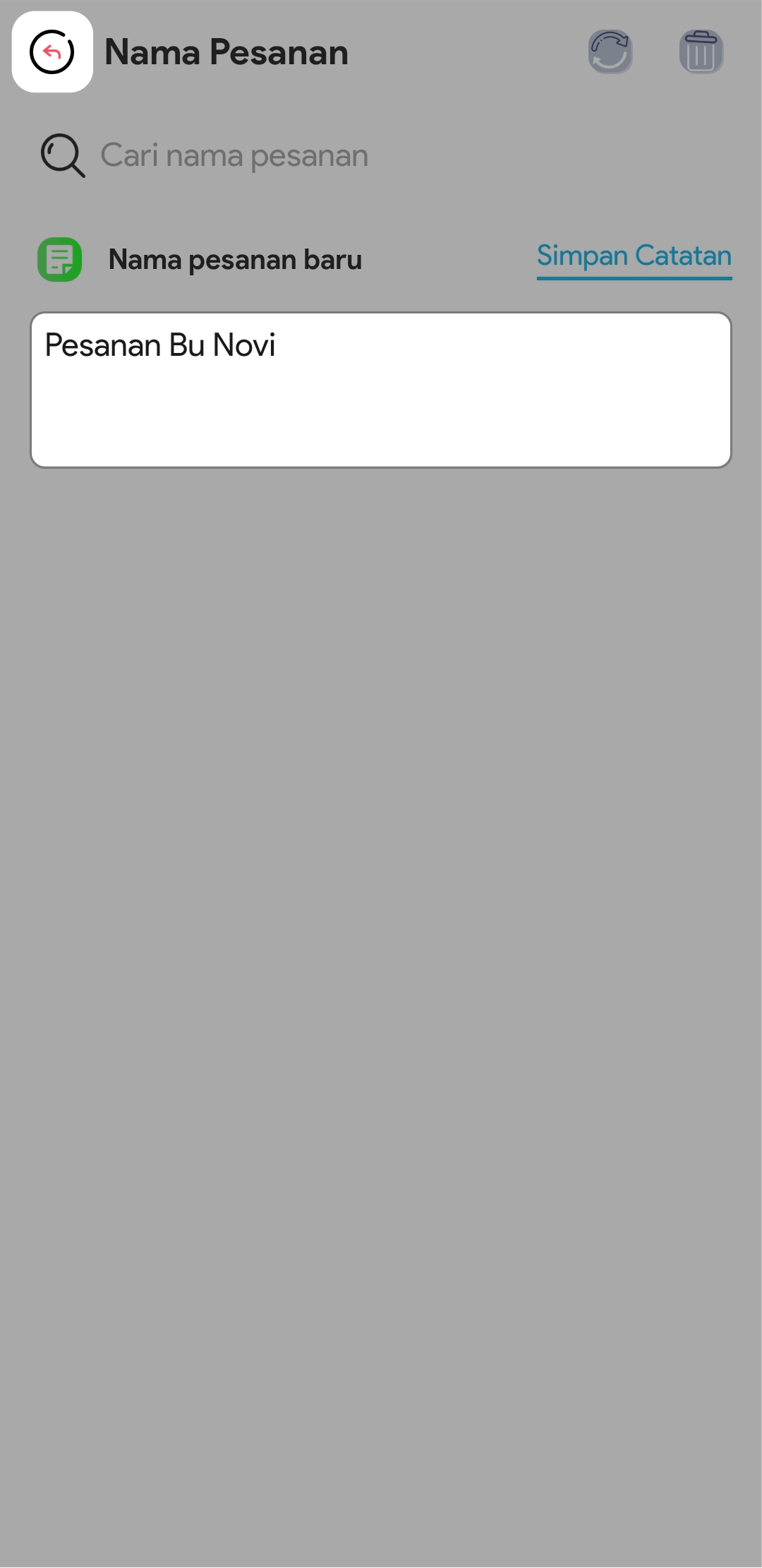 14. Masukkan Nama Pesanan. Misalkan nomor meja, nomor antrian atau nama pemesan. Jika sudah klik icon back