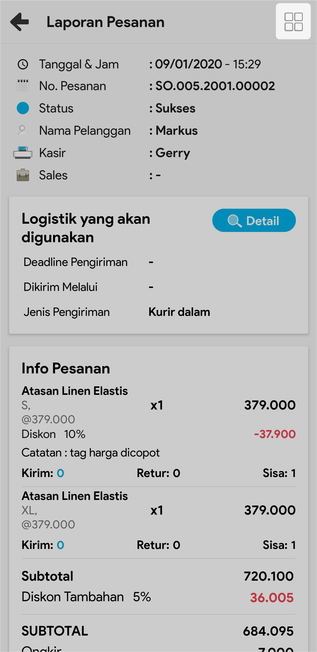 4. Pilih pesanan yang dimaksud