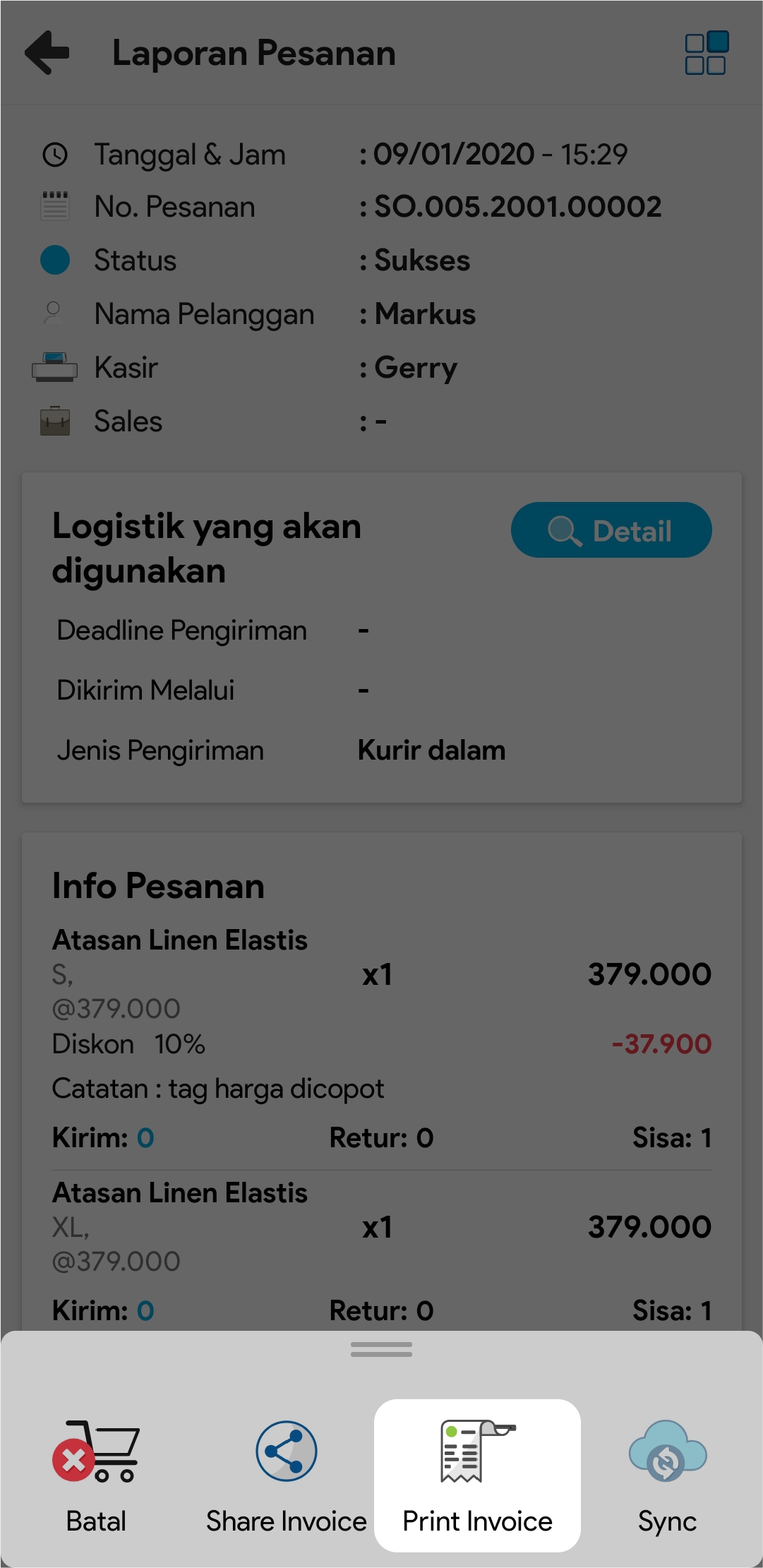 6. Pilih Print Invoice