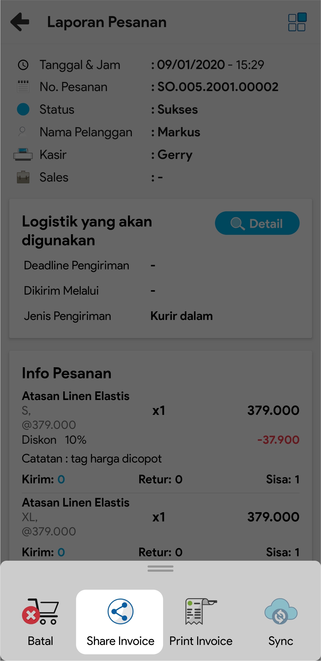 2. Masukkan nama pelanggan atau no pesanan pada kolom pencarian atau gunakan scanner barcode untuk mencari transaksi pesanan pelanggan tertentu