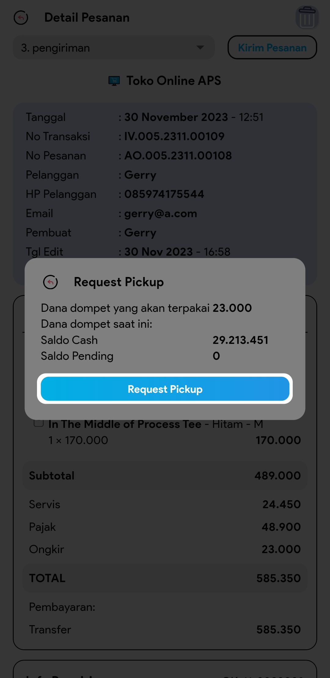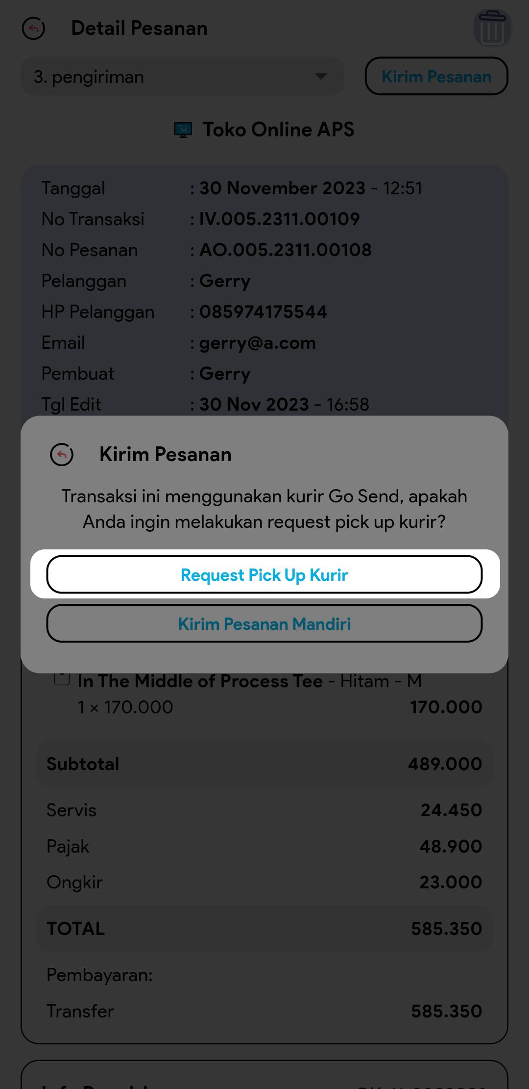 *Request Pick Up Kurir hanya dapat dilakukan untuk transaksi yang bersumber dari toko online APS dan menggunakan kurir instant.