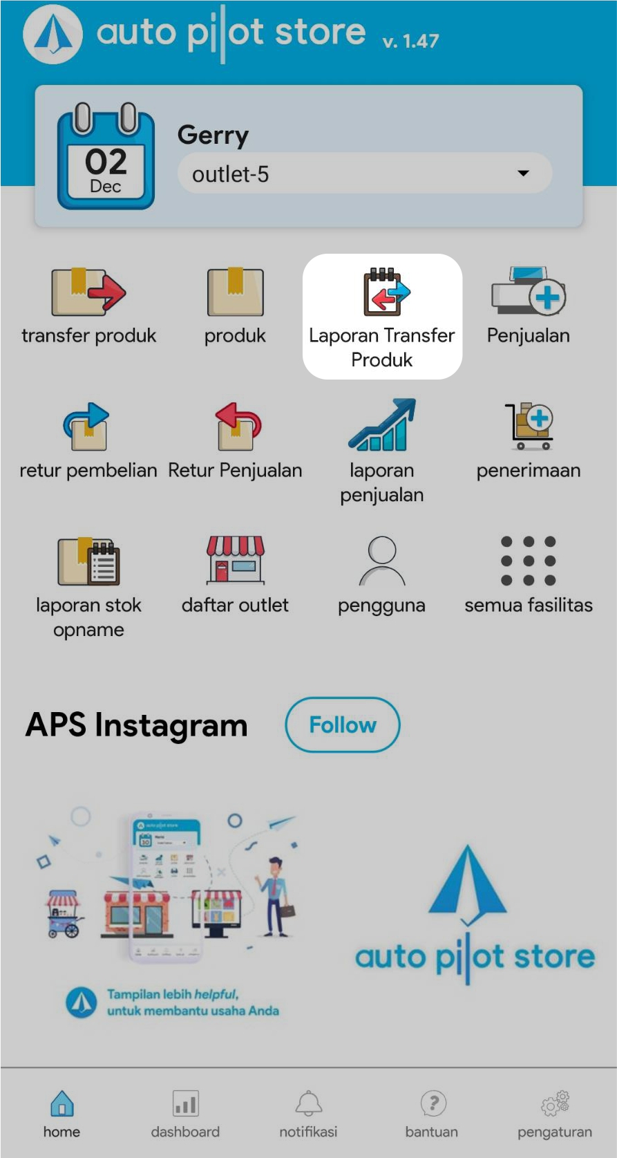 1. Pilih Fasilitas Laporan Transfer Produk