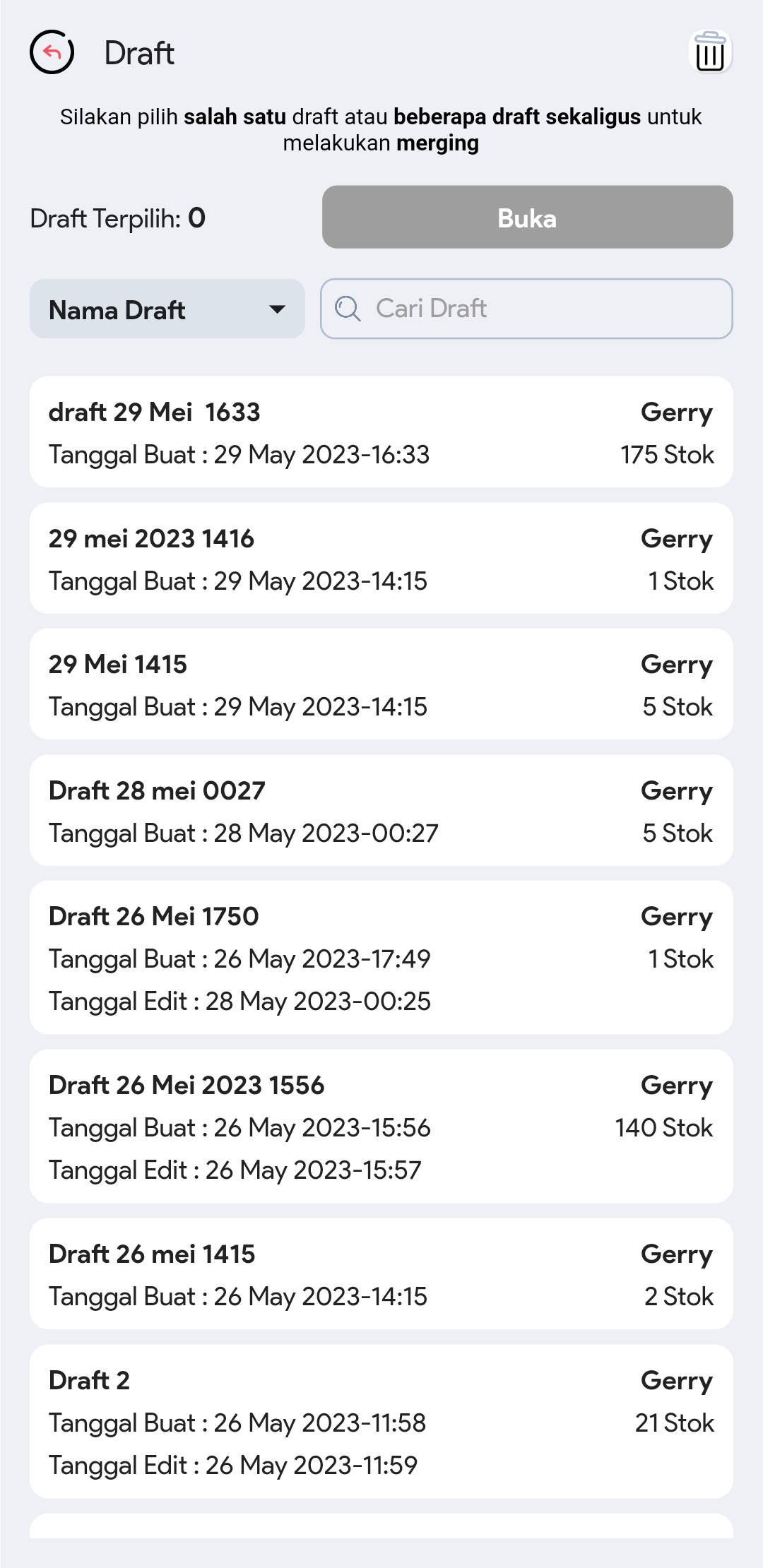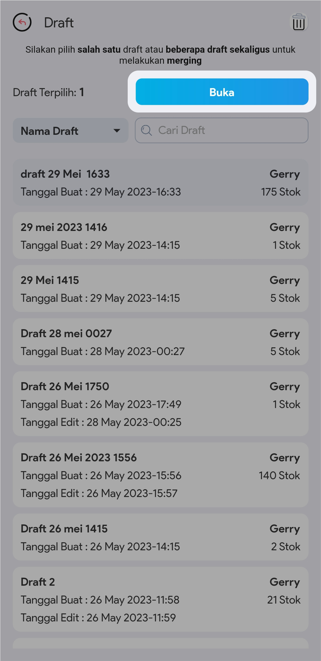 4. Silahkan pilih 1 draft yang ingin Anda edit datanya. Anda bisa menggunakan pencarian draft / nama pembuat draft, untuk memudahkan pencarian.