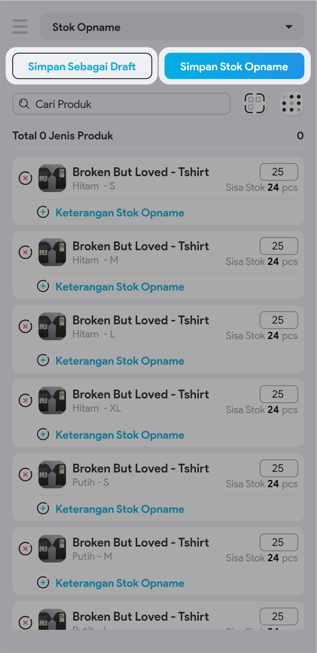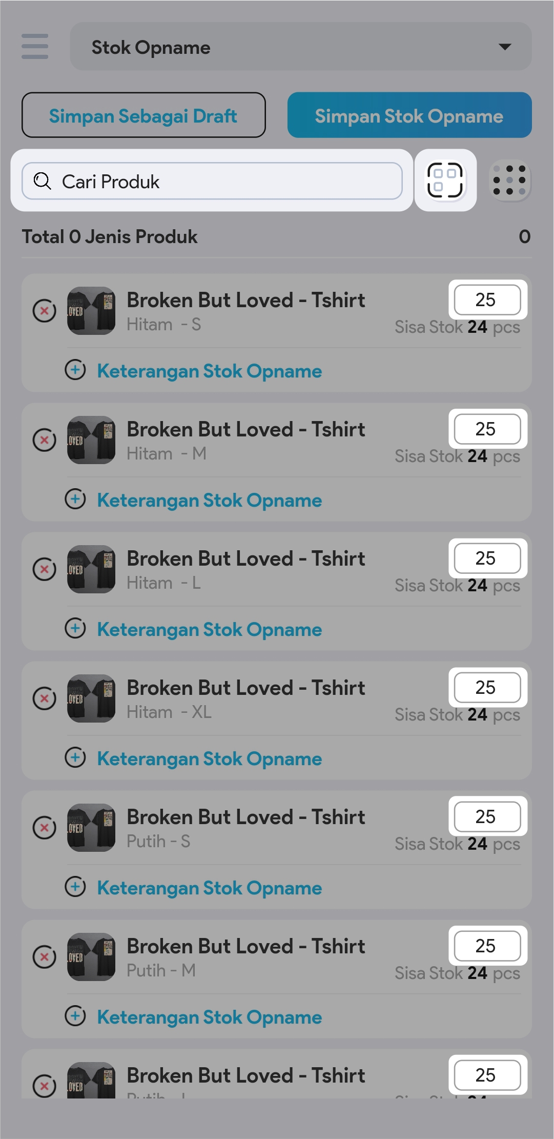 6. Silahkan ubah data stok yang ingin Anda perbaiki, atau Anda dapat menghapus dan menambah produk yang ingin diinput.