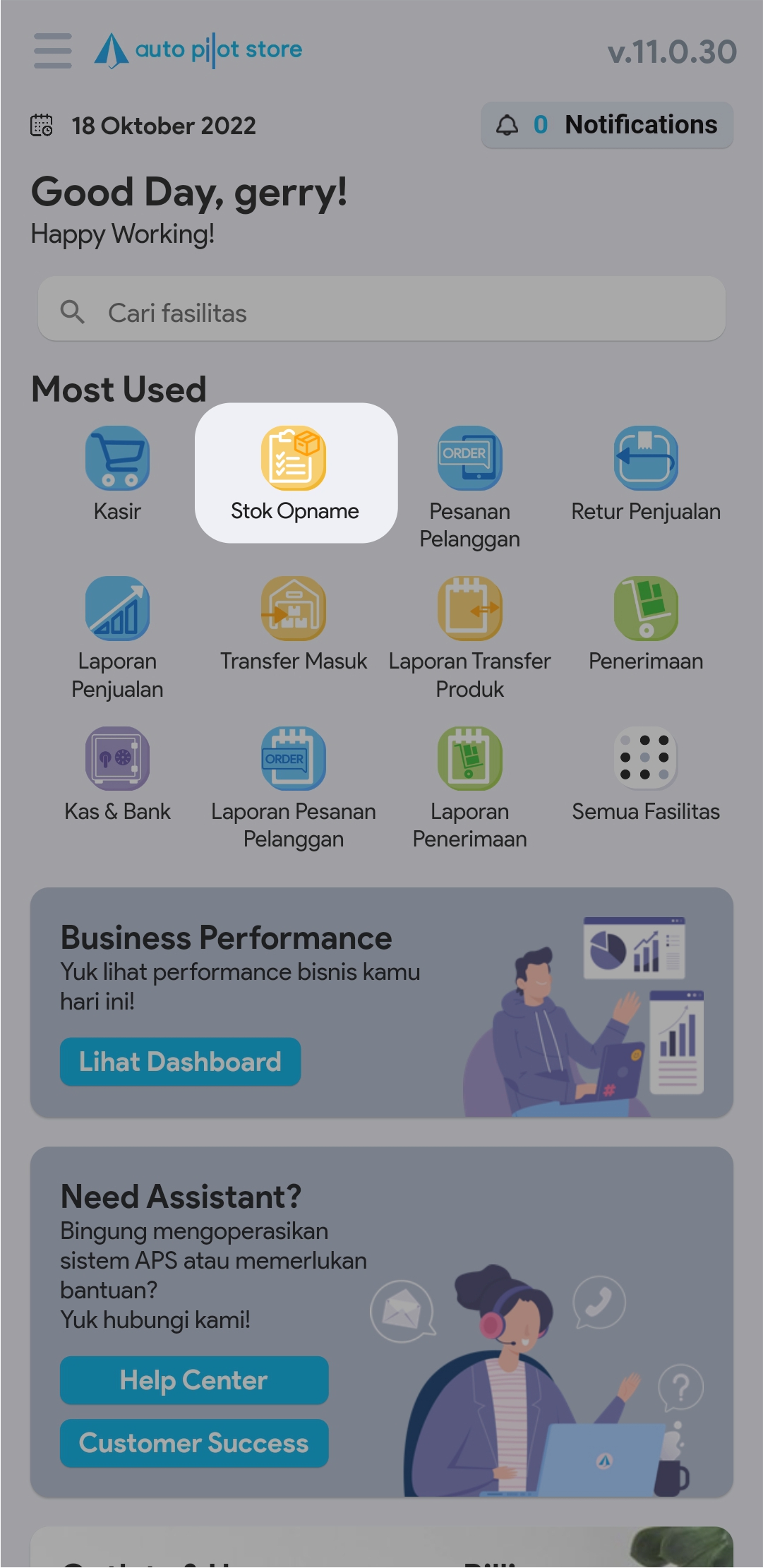2. Atau jika Anda tidak menemukan menu Stok Opname di halaman utama, Anda dapat mengklik Semua Fasilitas, kemudian pilih menu Stok Opname