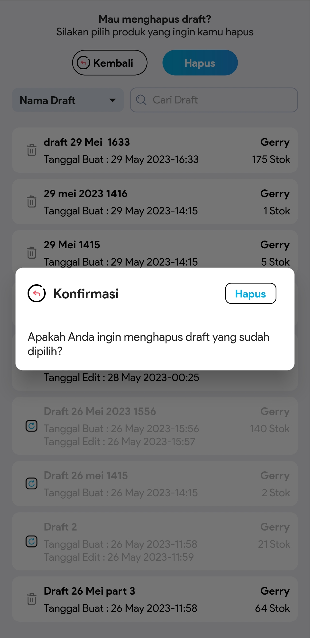 7. Lakukan konfirmasi penghapusan, maka draft berhasil terhapus.