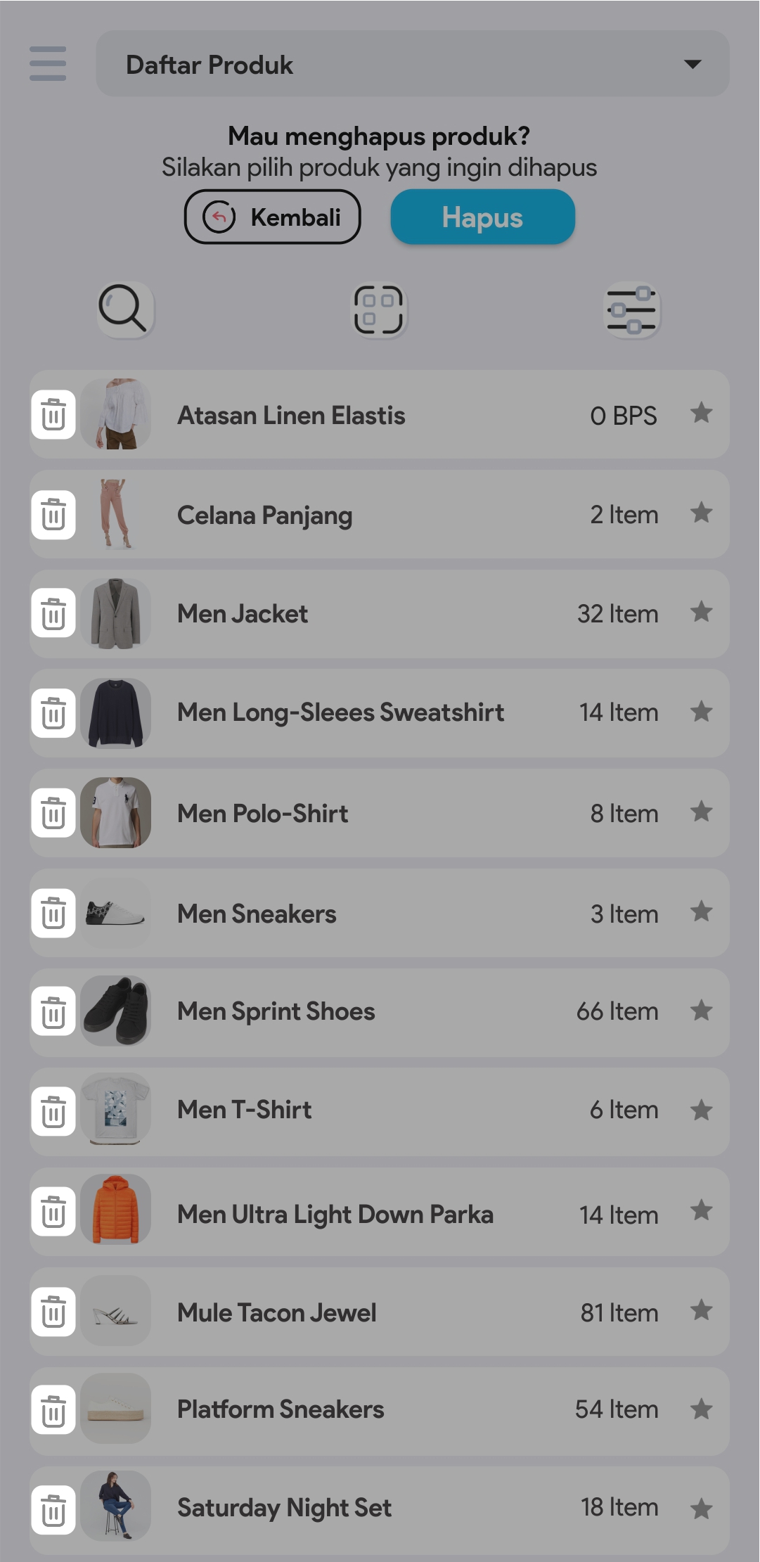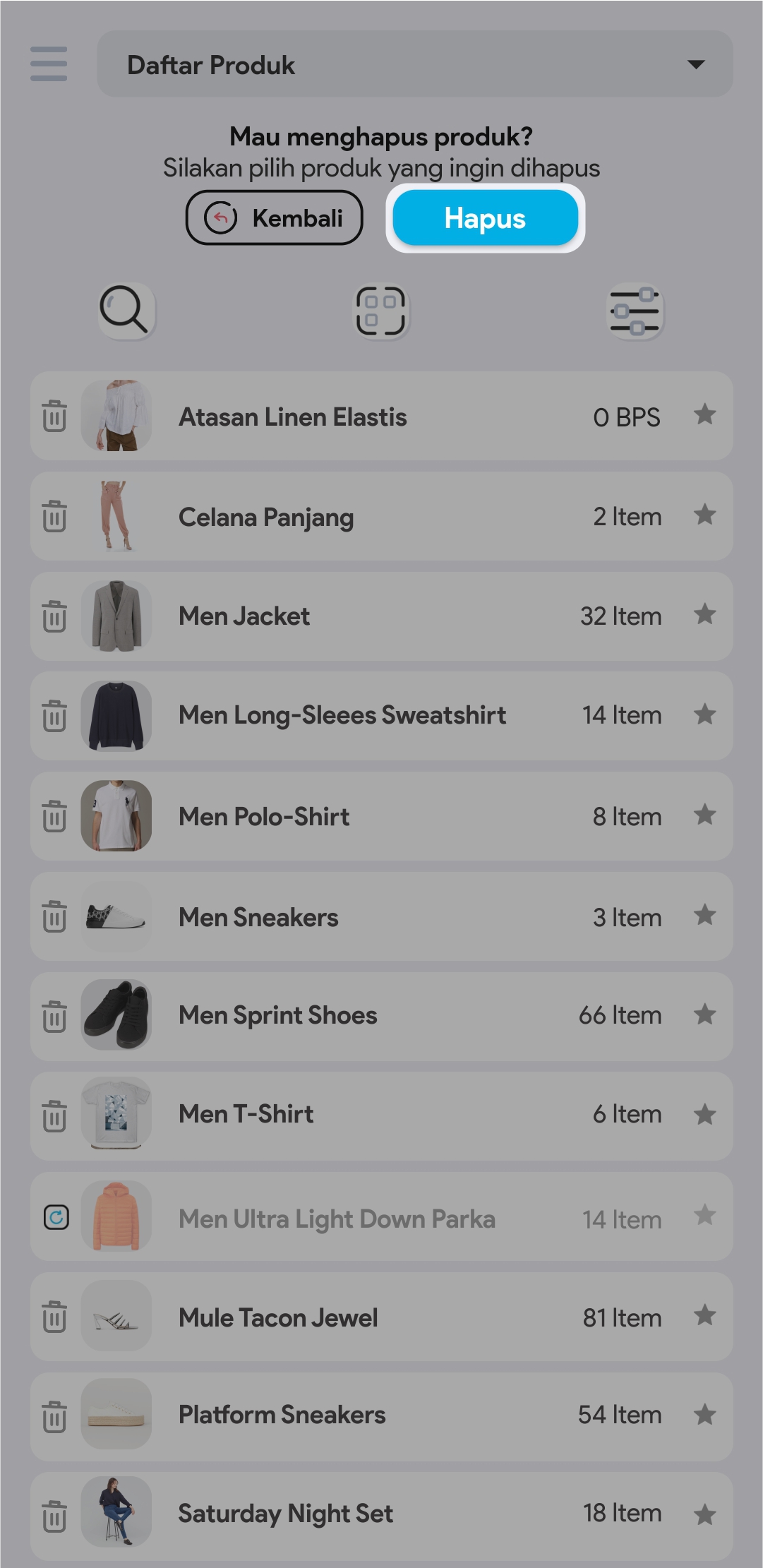 4. Klik icon Tempat Sampah pada bagian depan produk yang akan dihapus.