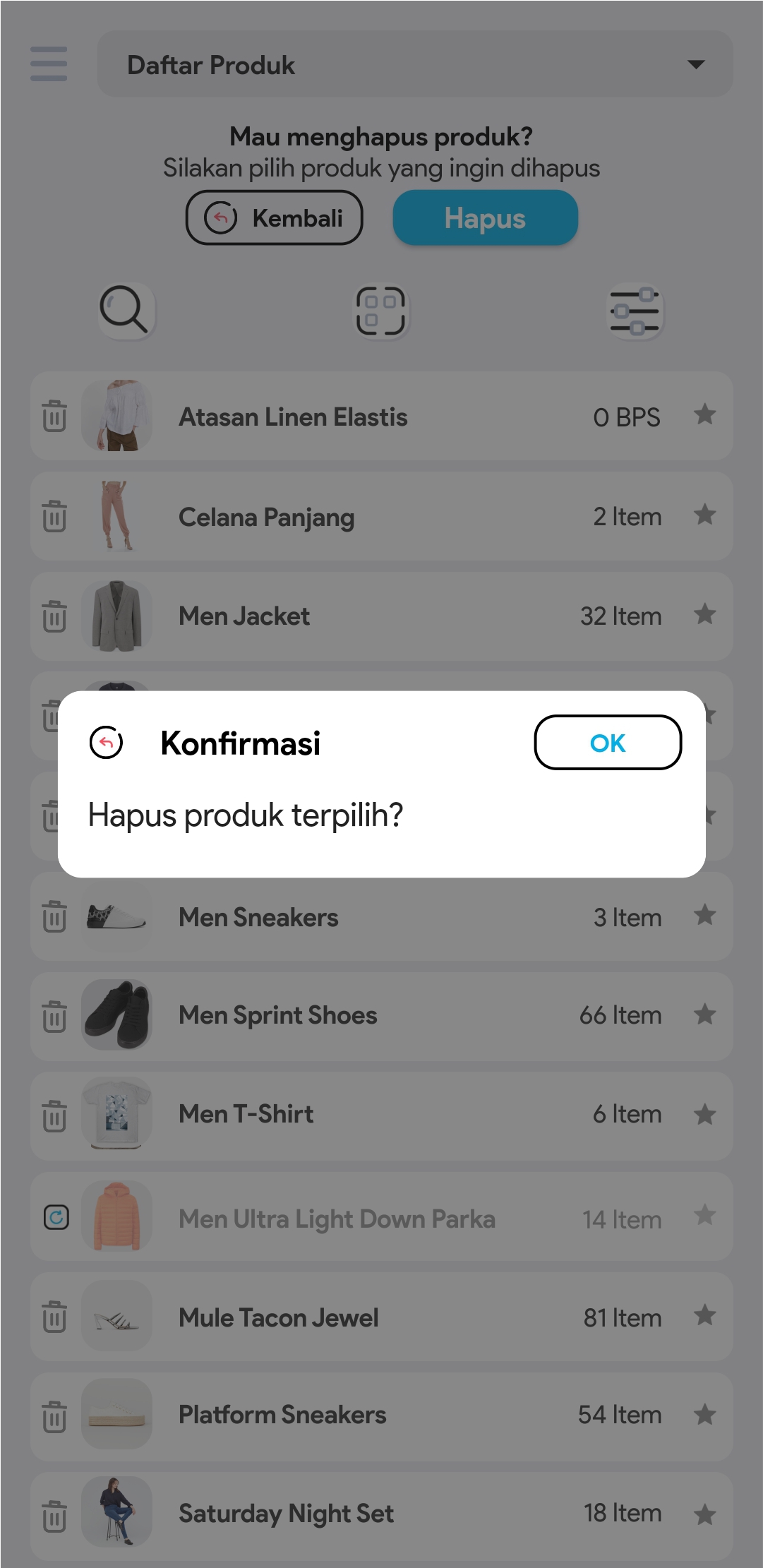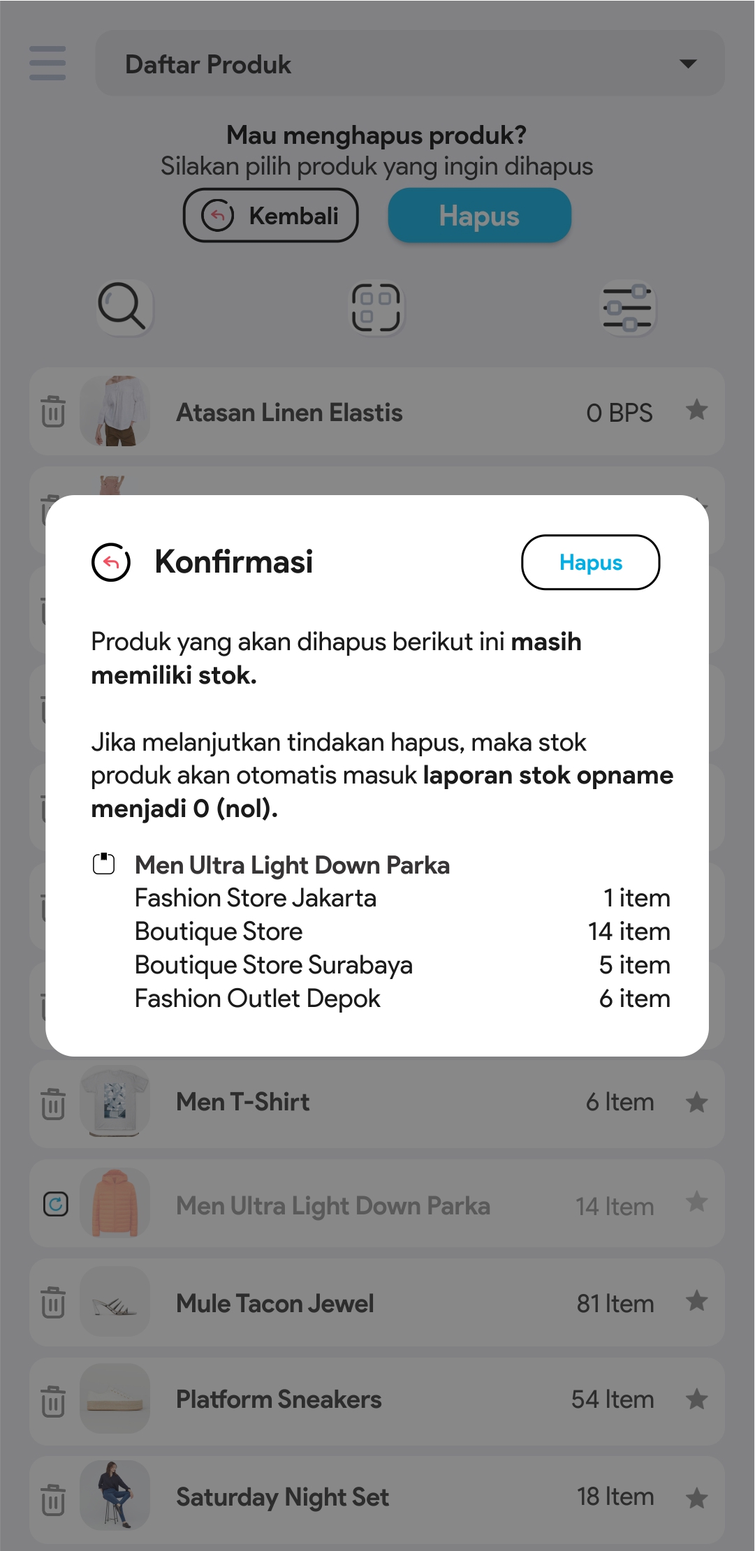 7. Jika produk Anda masih memiliki stok, maka akan keluar pop up peringatan seperti ini.