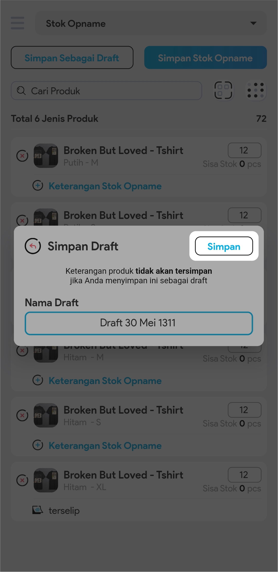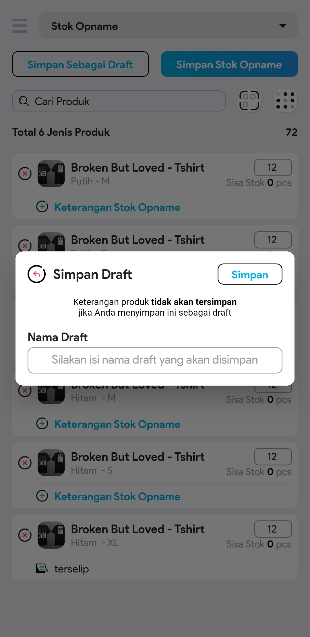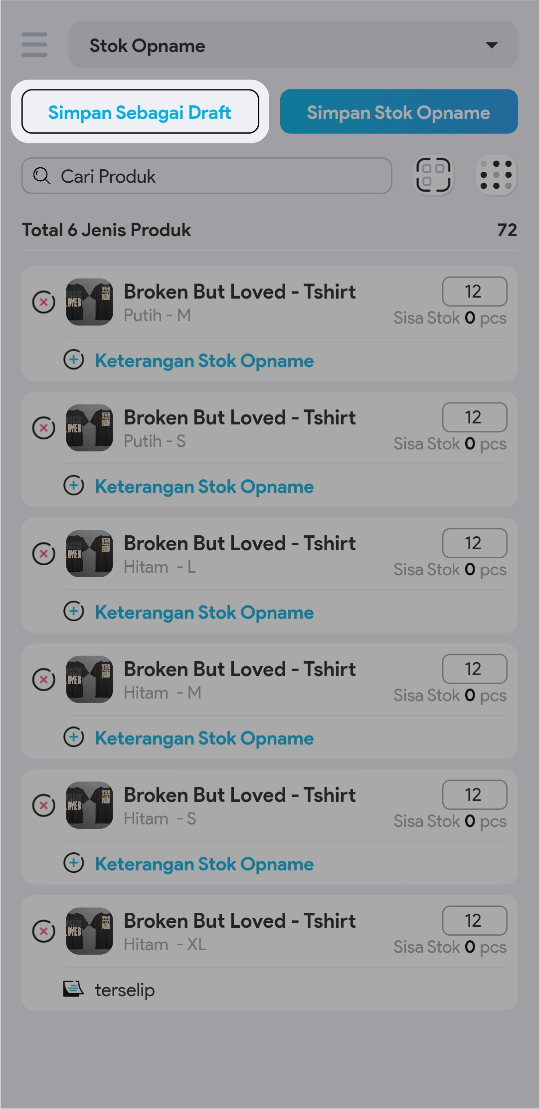 Jika Anda menggunakan scan barcode, kolom ini akan otomatis terisi setiap kali Anda me-scan barcode produk