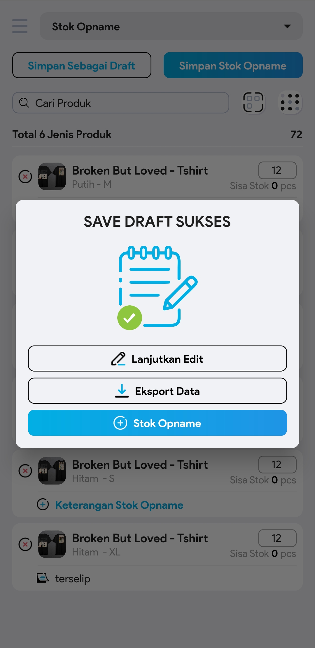 9. Klik Lanjutkan Edit untuk melanjutkan pengeditan draft stok opname