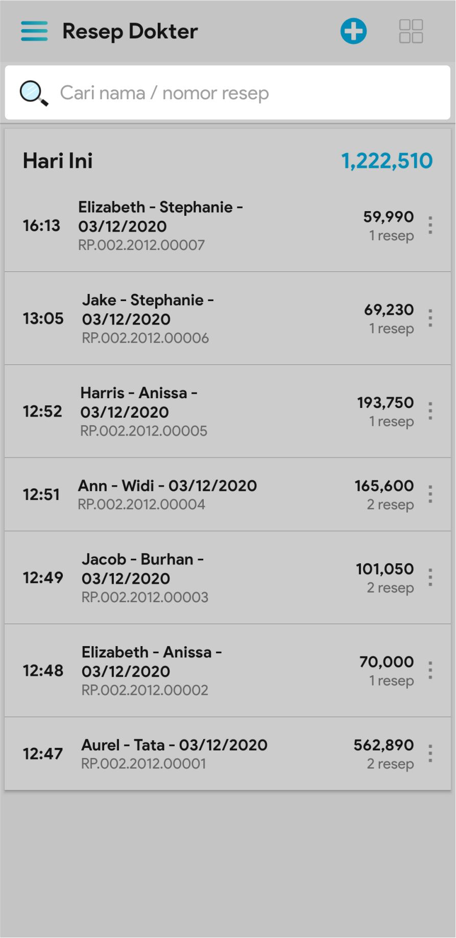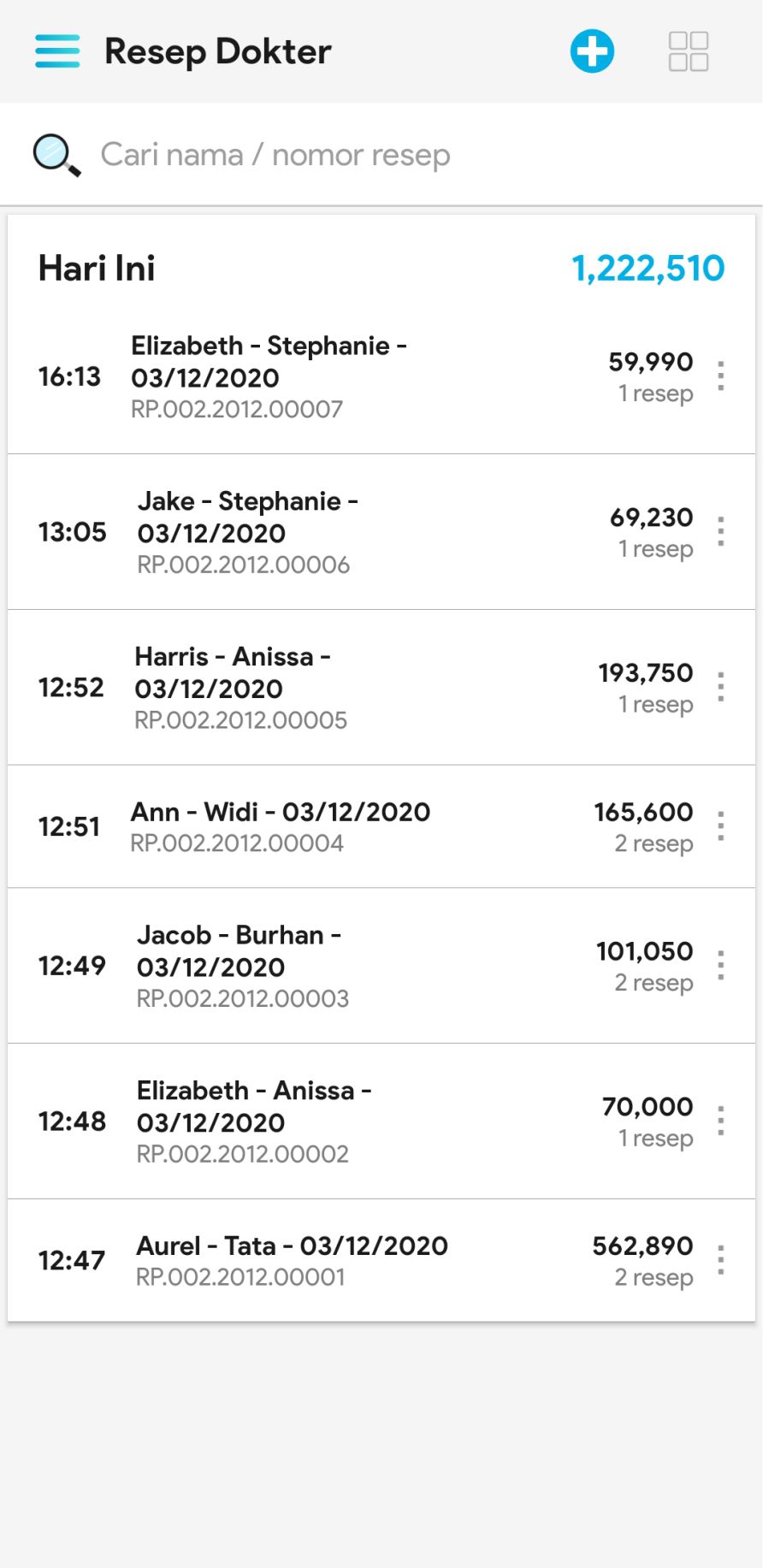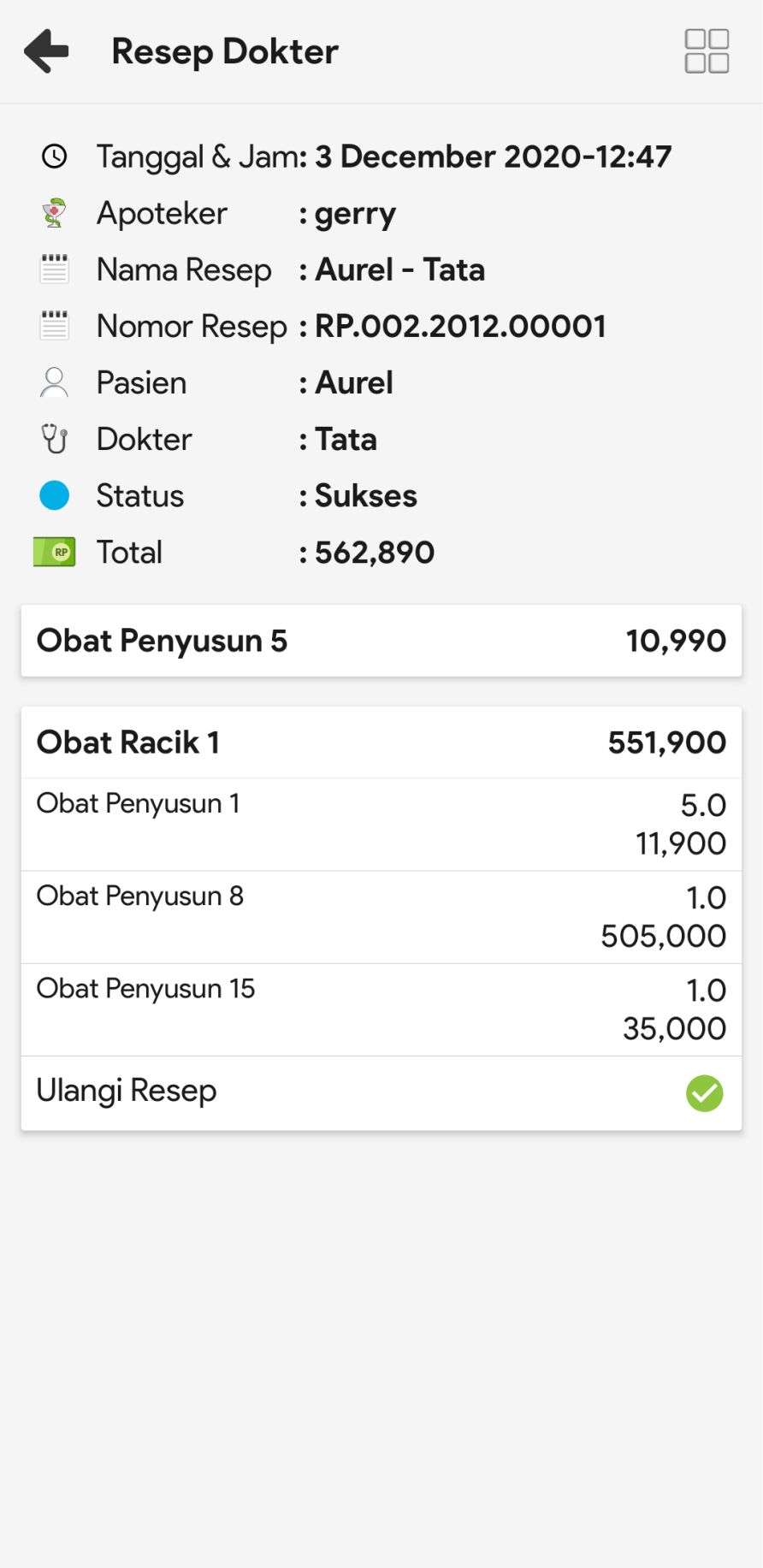 6. Untuk mencopy resep, mengedit resep ataupun membatalkan resep, klik icon More dan pilih icon sesuai fungsi yang ingin Anda lakukan.