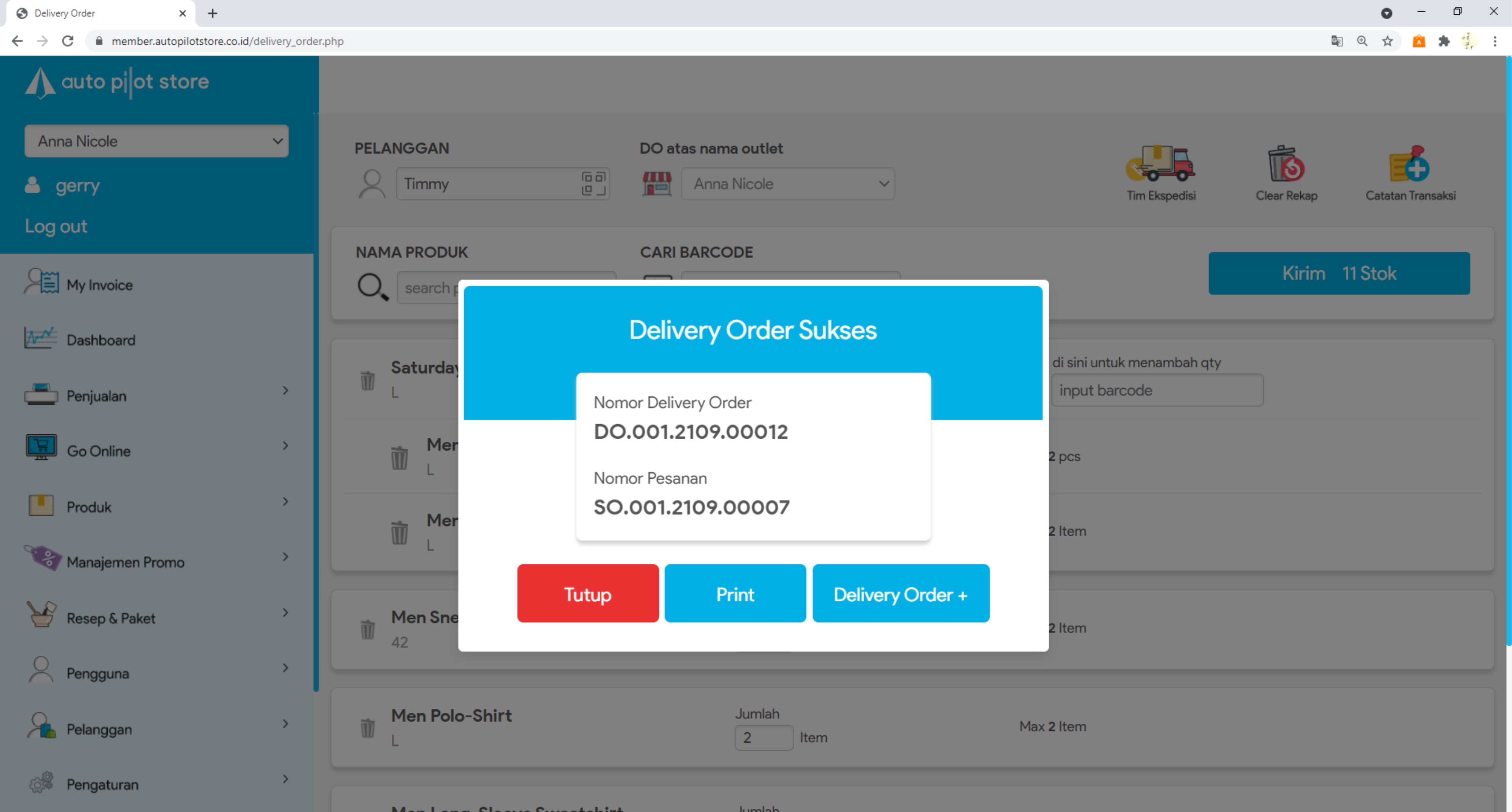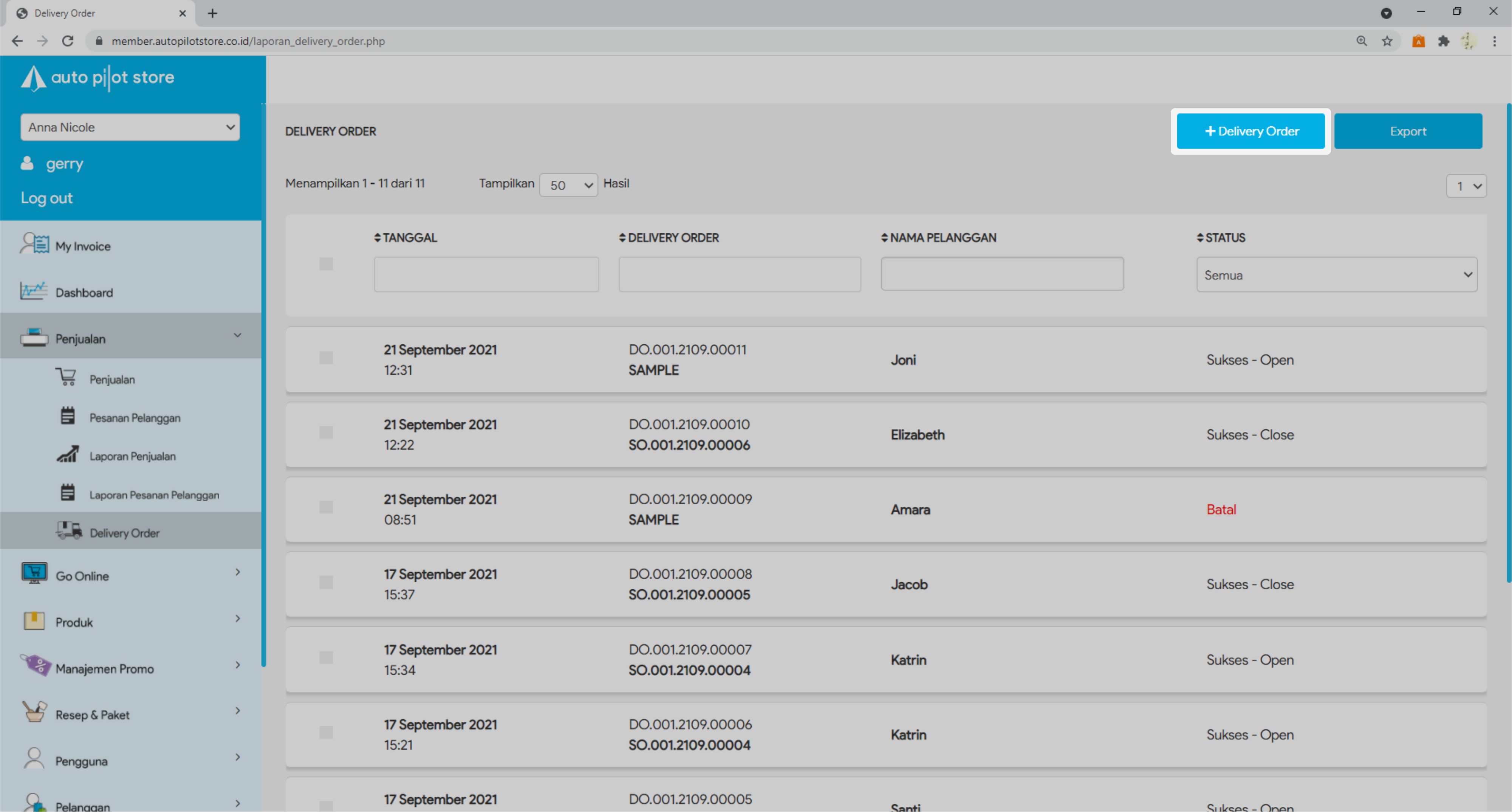 16. Delivery Order Sukses