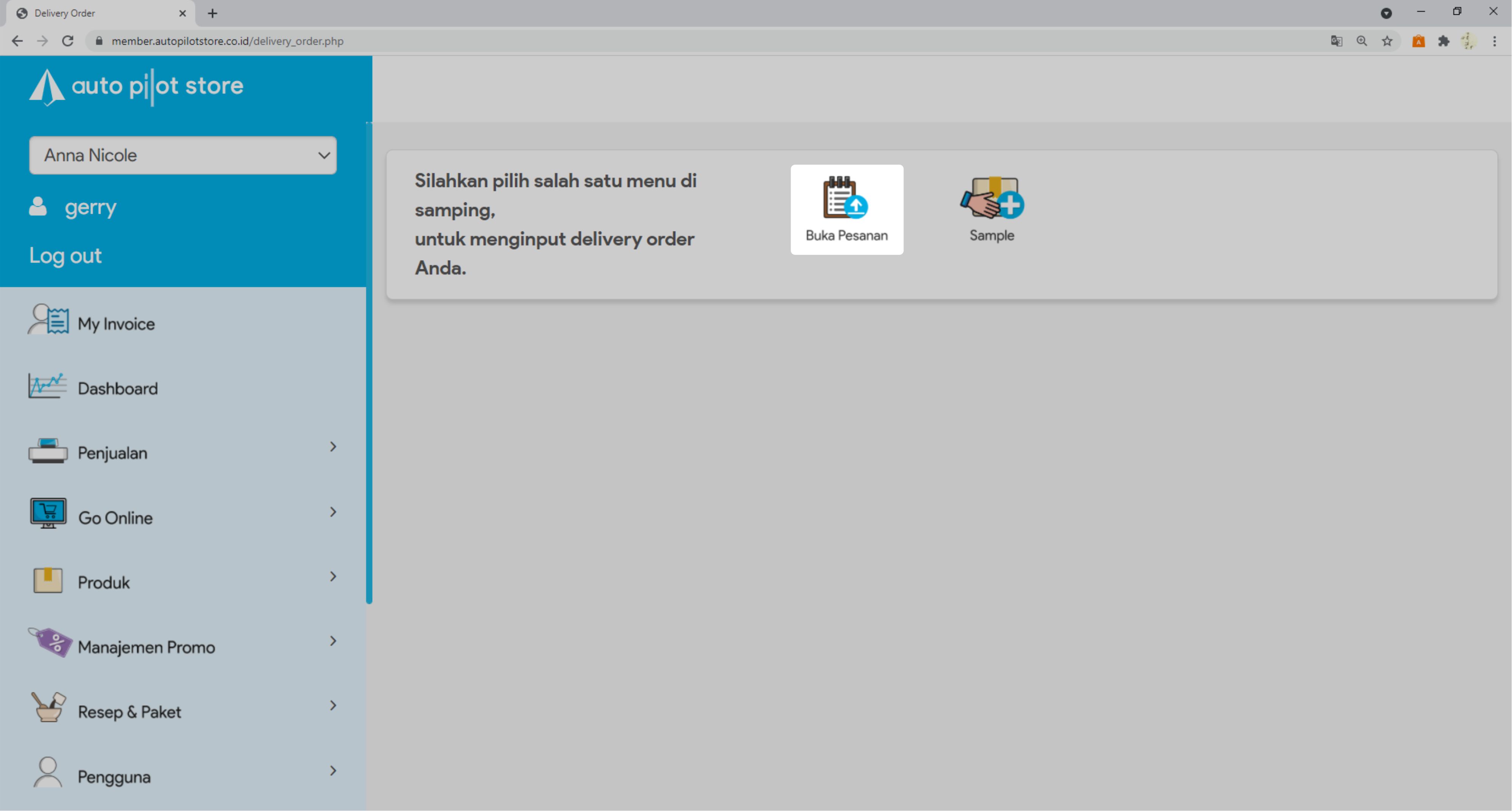 2. Pilih Submenu Delivery Order