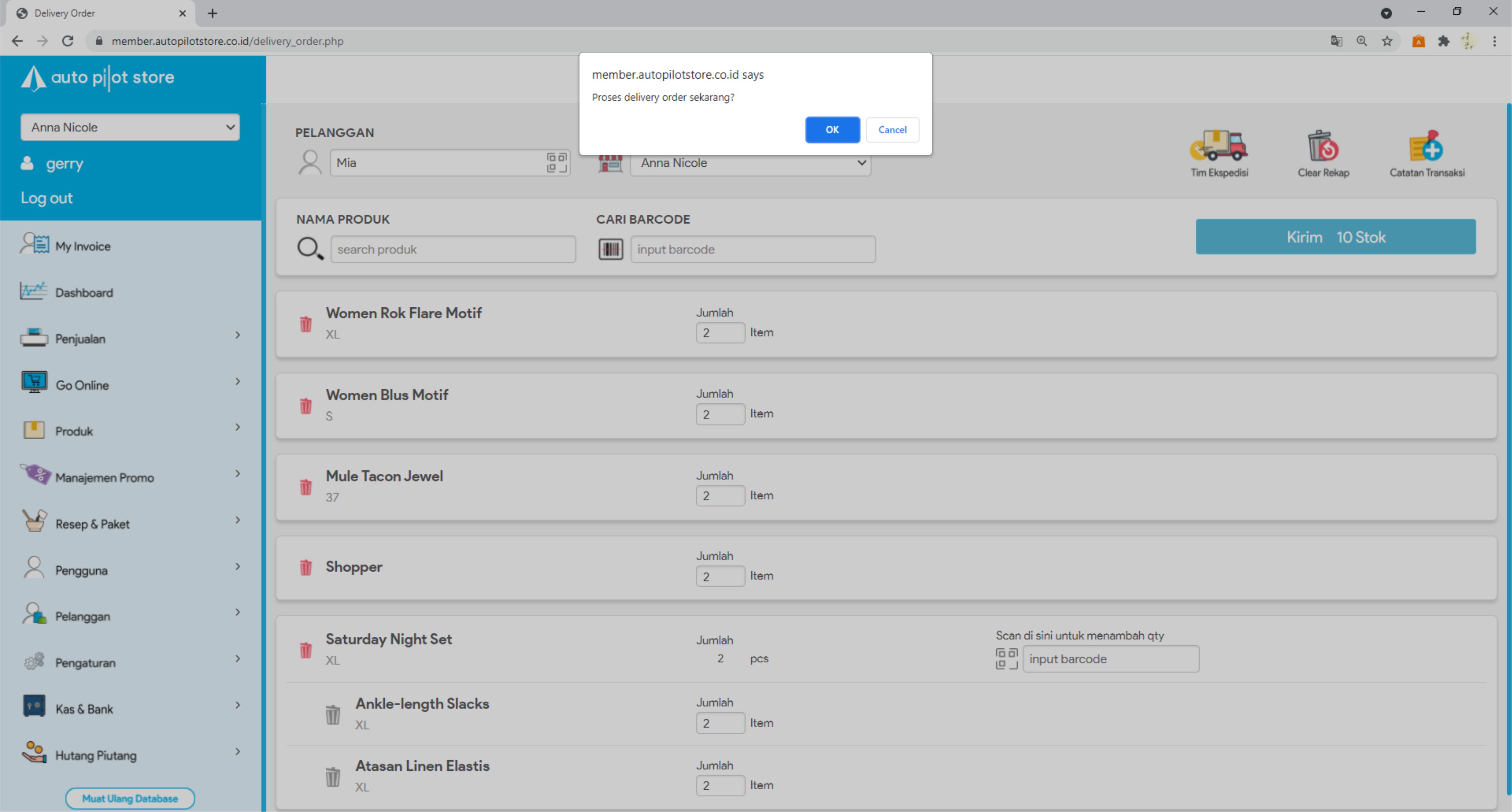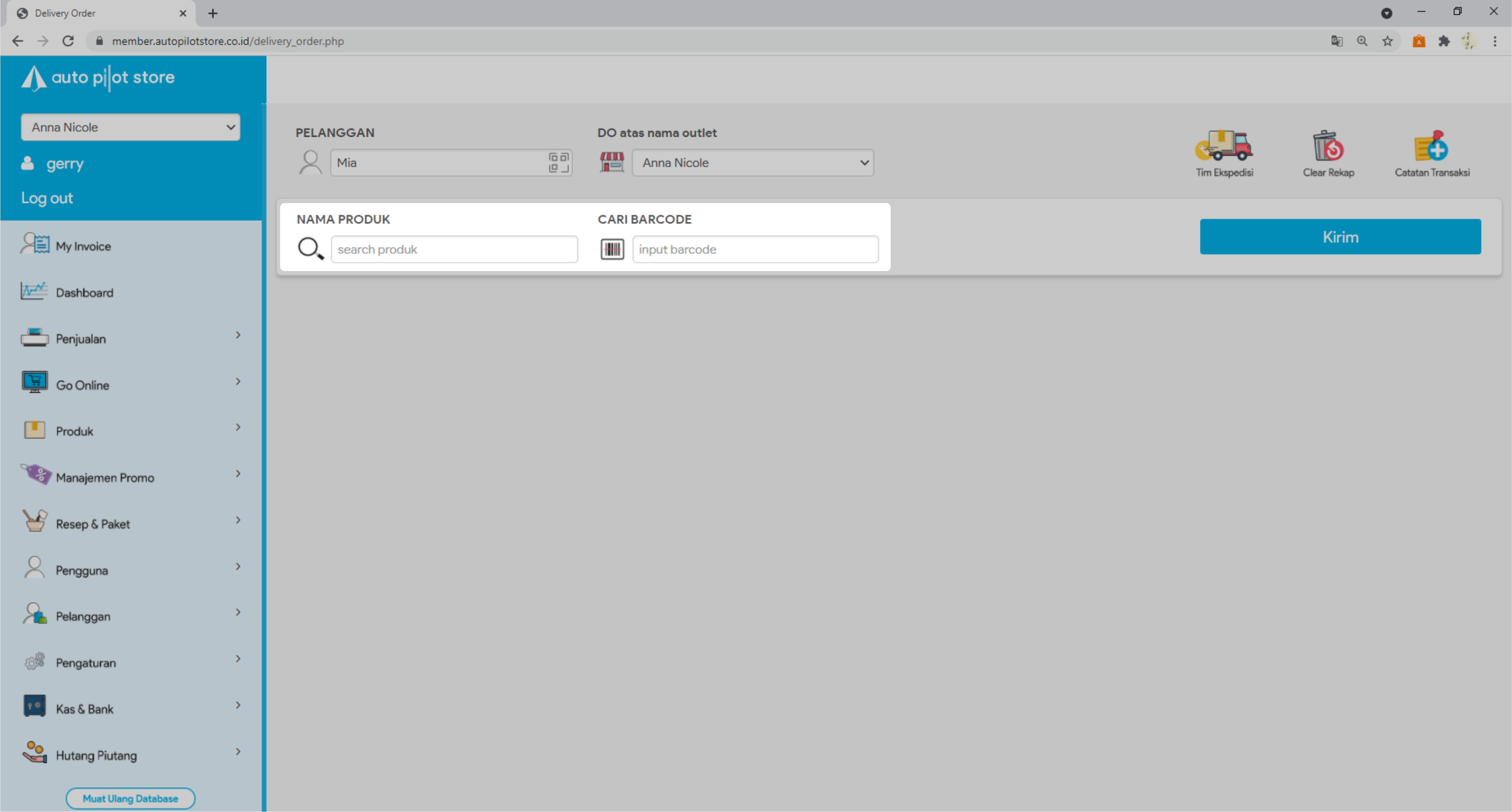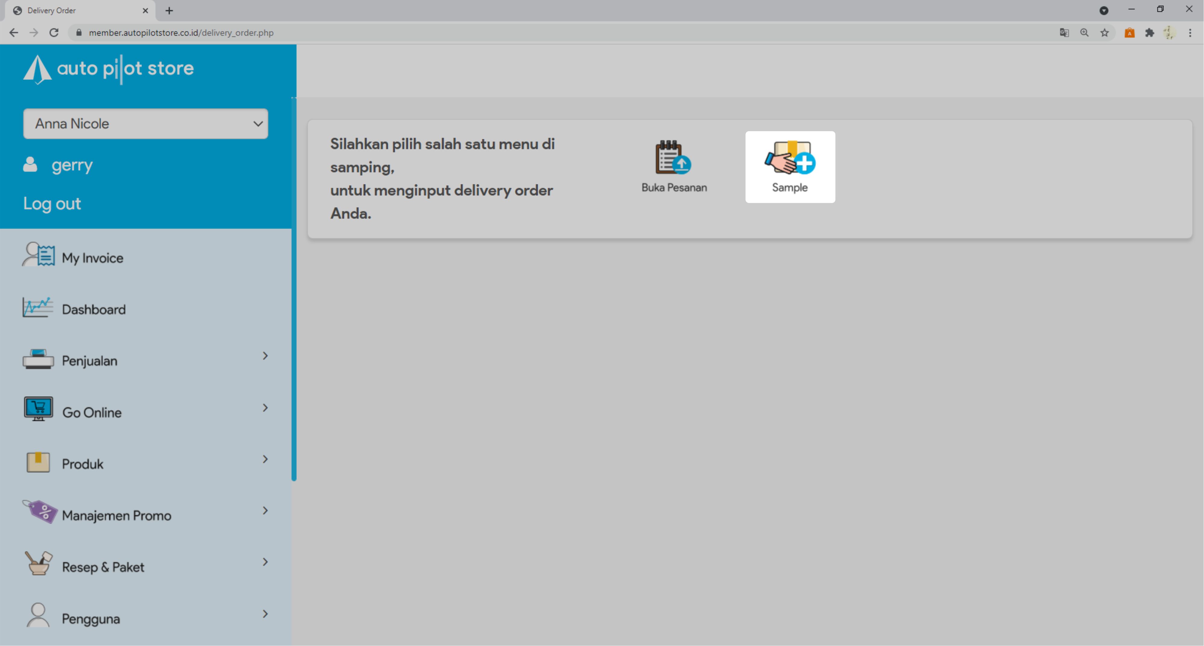 2. Pilih Submenu Delivery Order