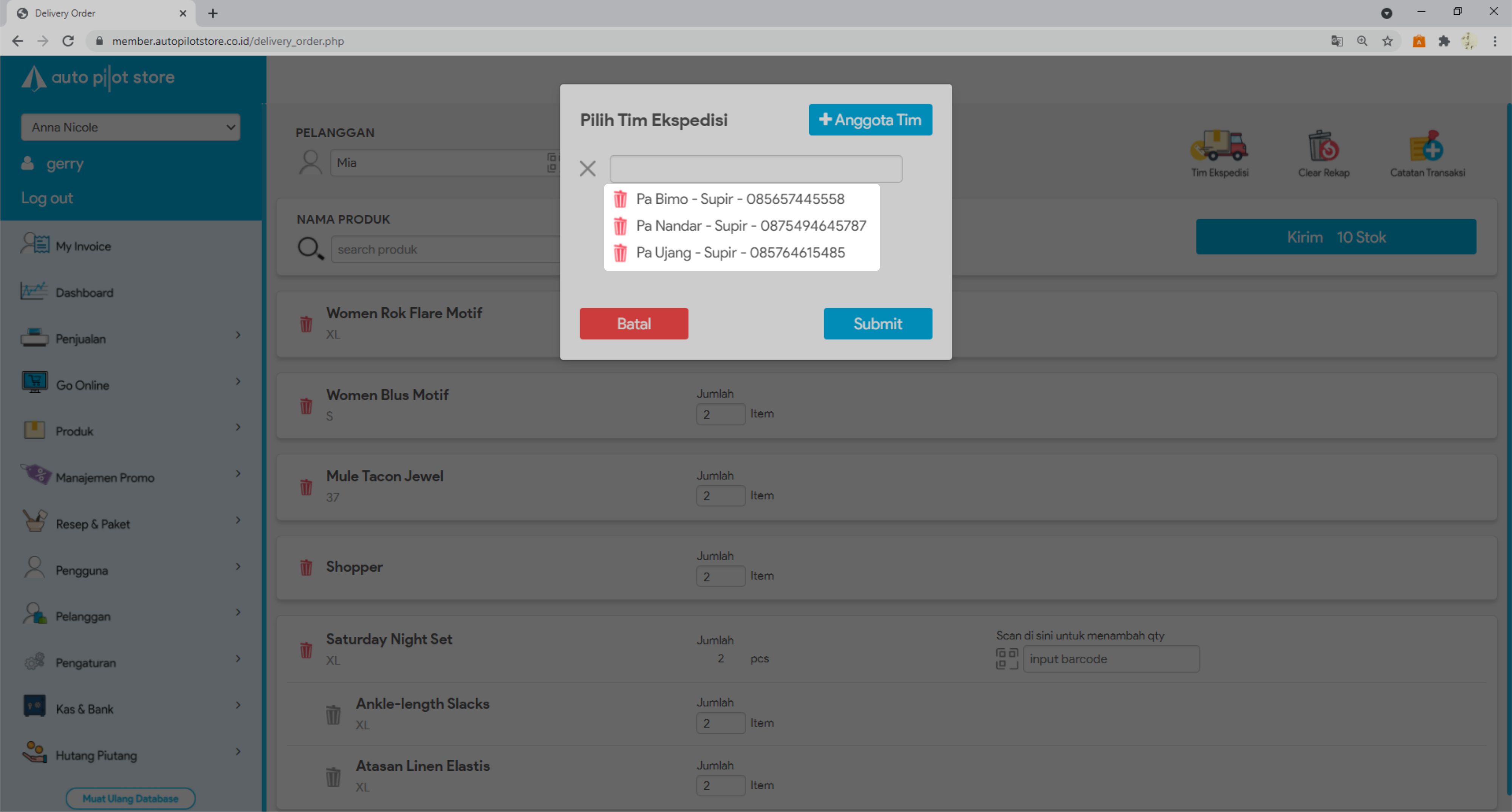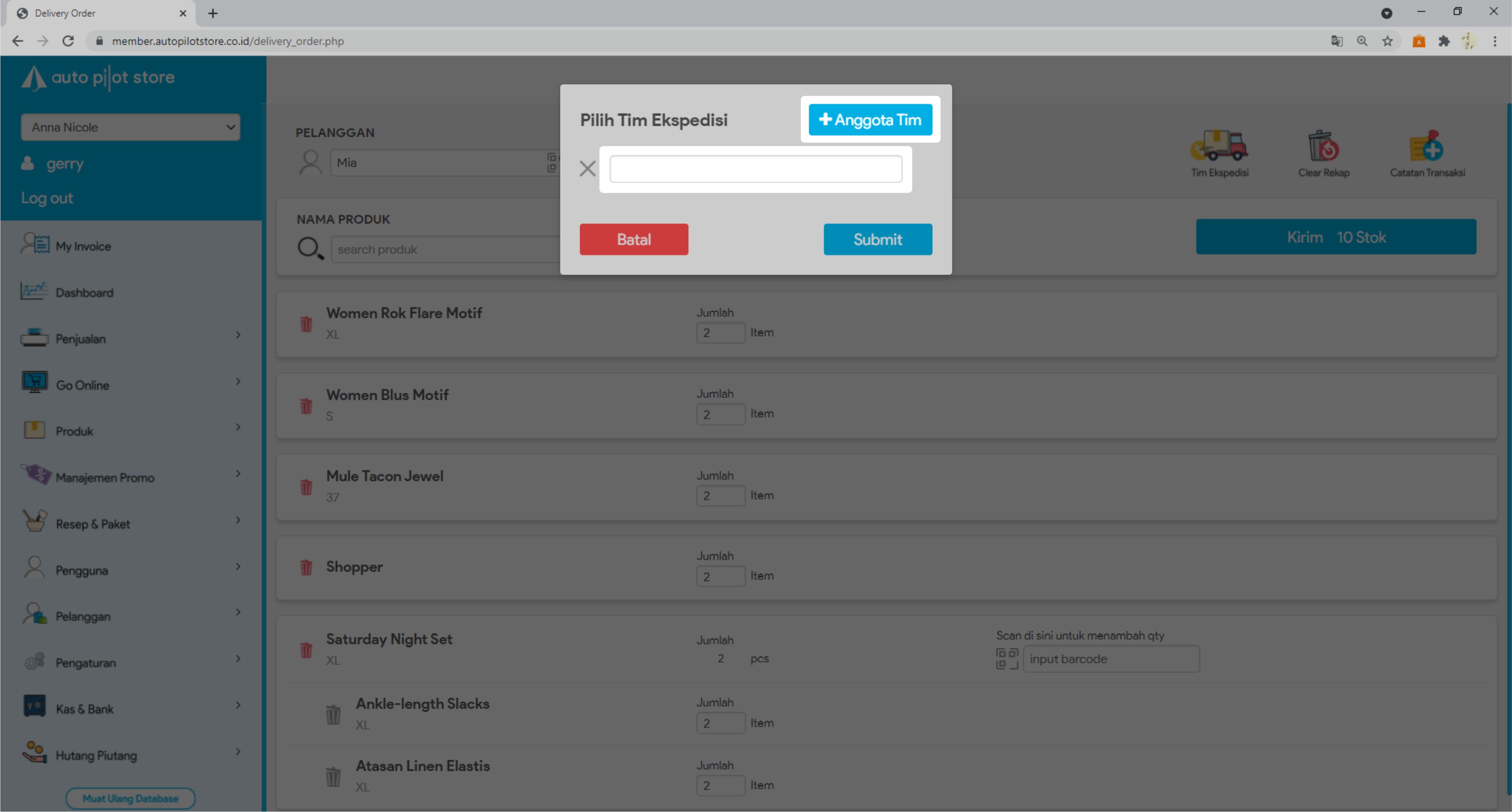 10. Anda bisa menambah data tim ekspedisi yang akan melakukan pengiriman barang dengan mengklik icon Tim Ekspedisi