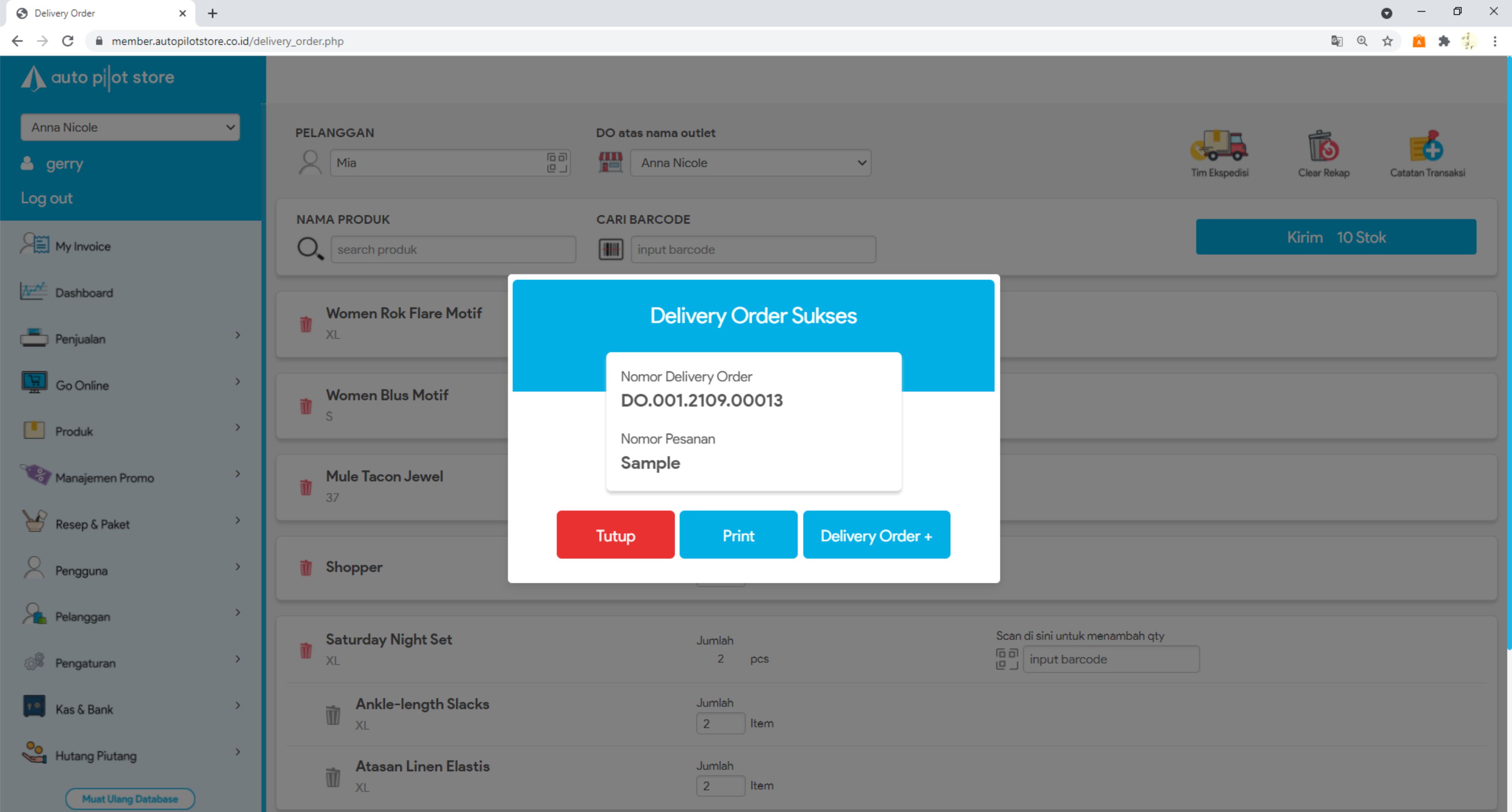 16. Delivery Order Sukses