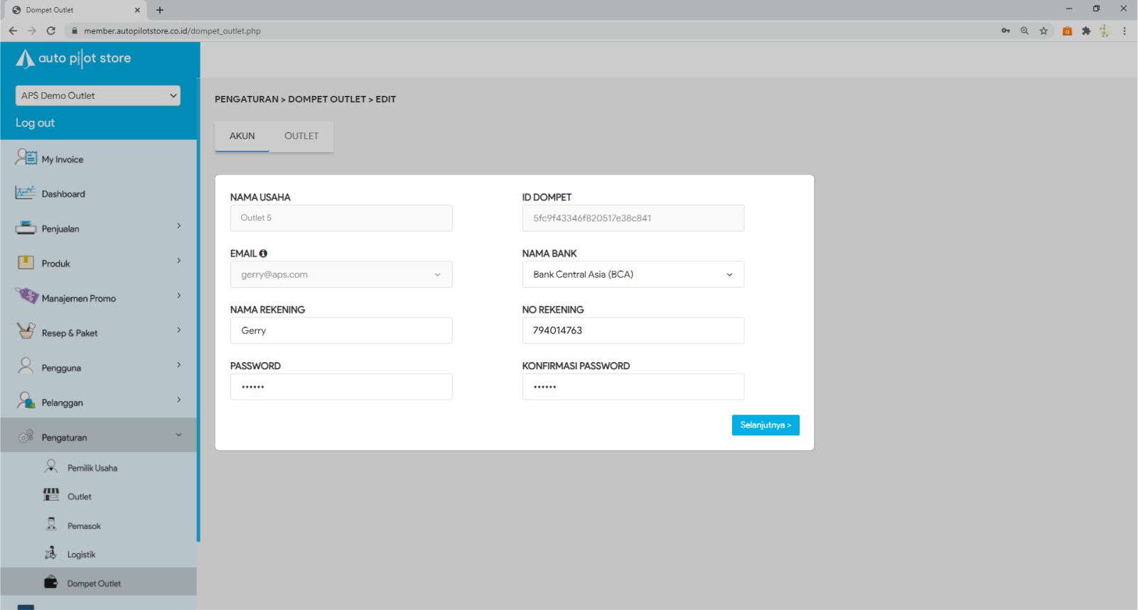 2. Pilih Sub Menu Dompet Outlet