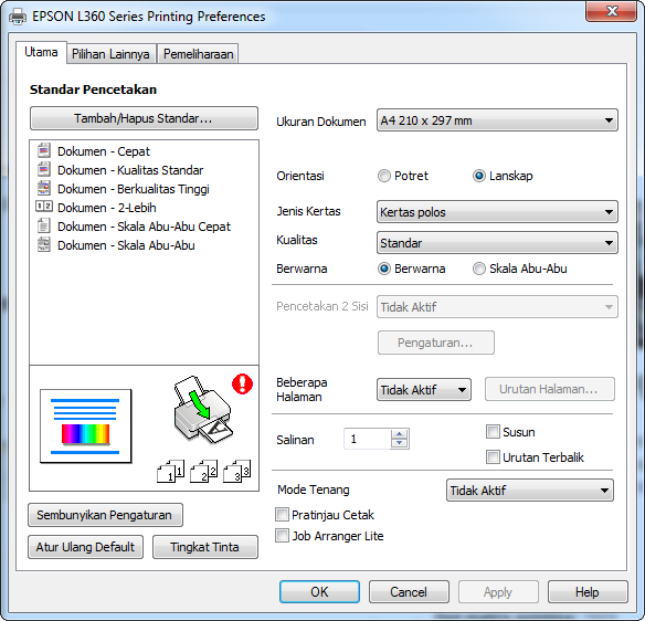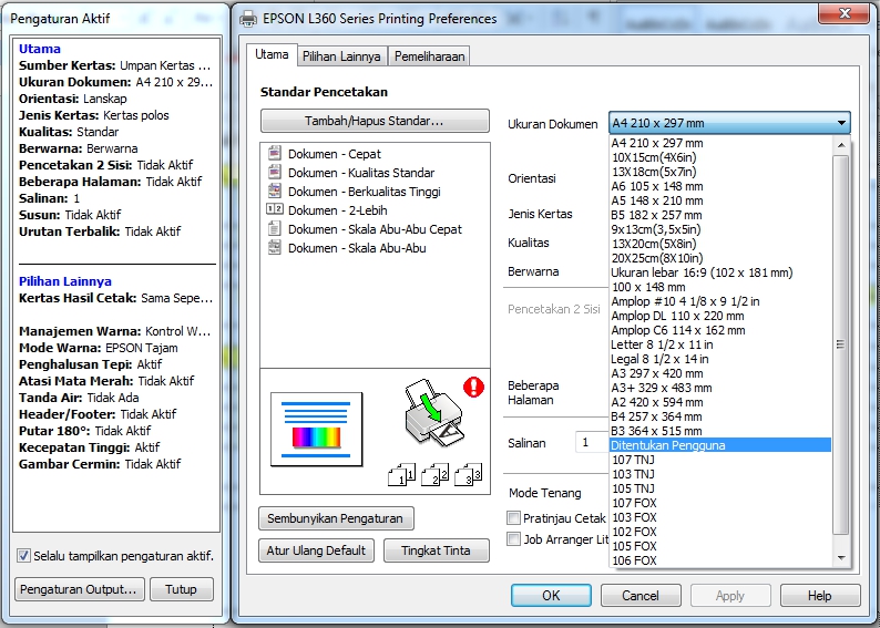 2. Cari pengaturan Ukuran Dokumen / Paper Size