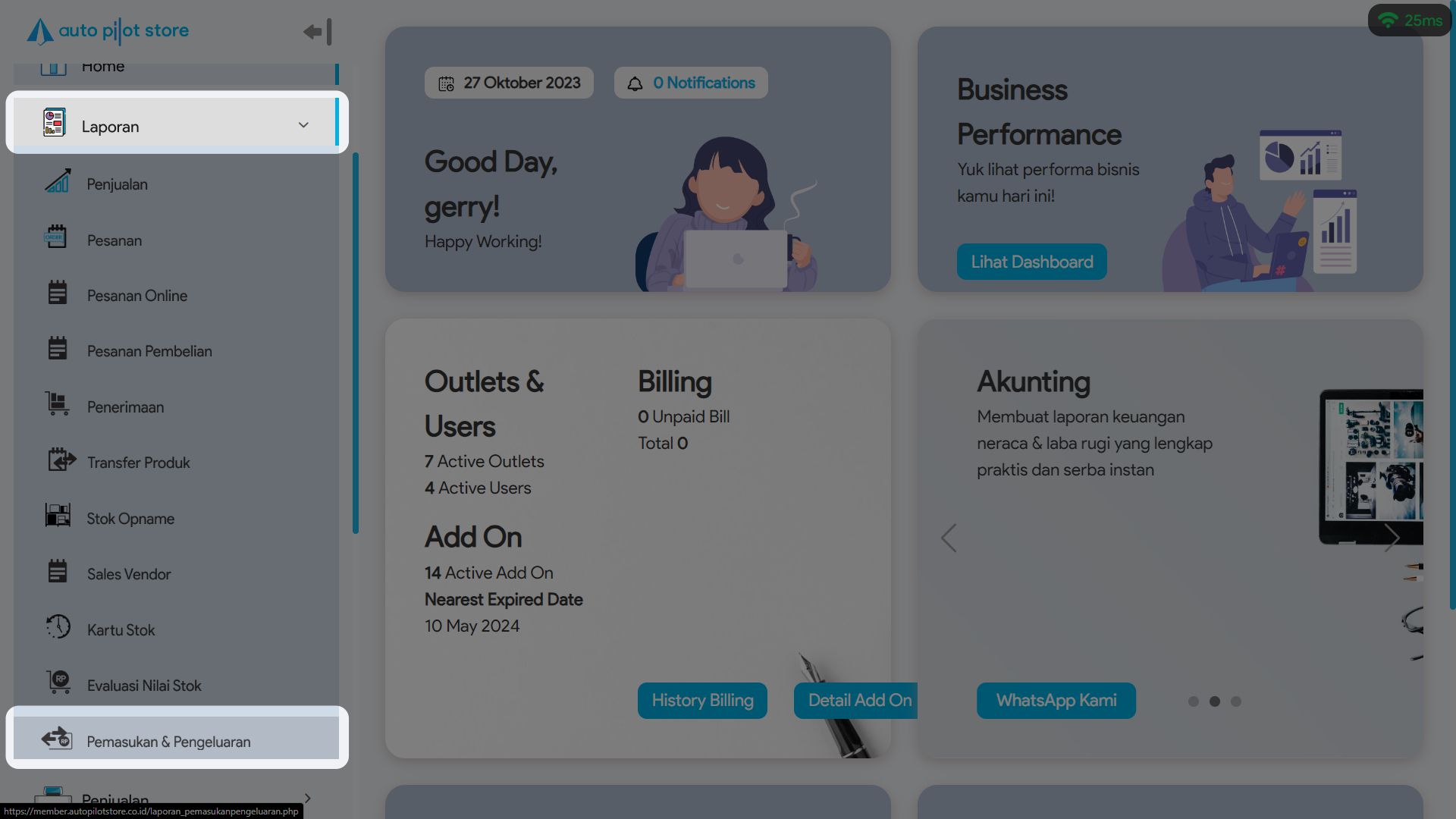 2. Pilih Sub Menu Pemasukan & Pengeluaran