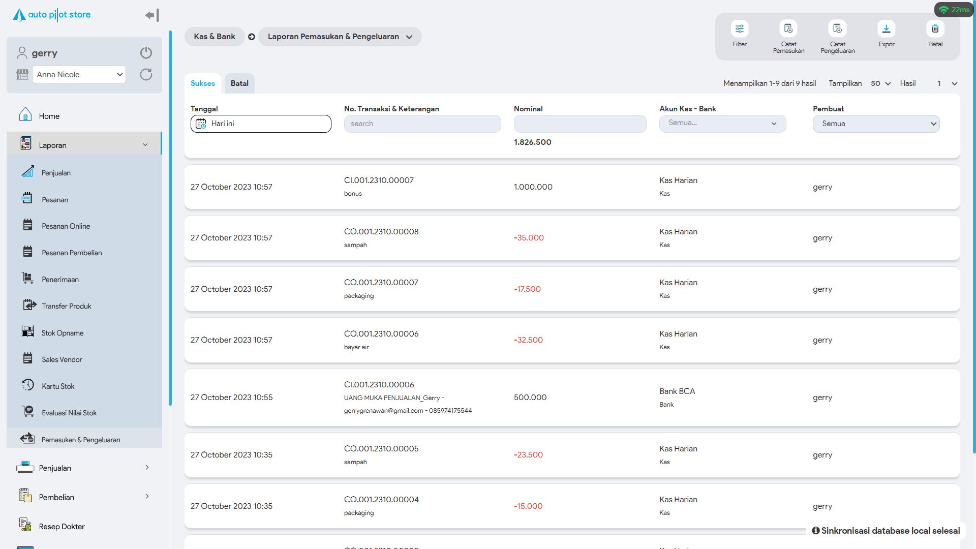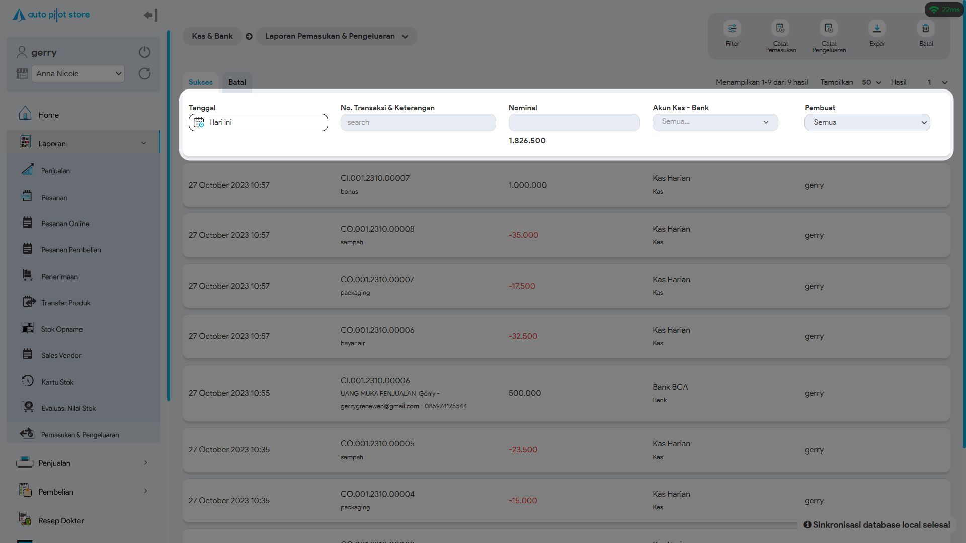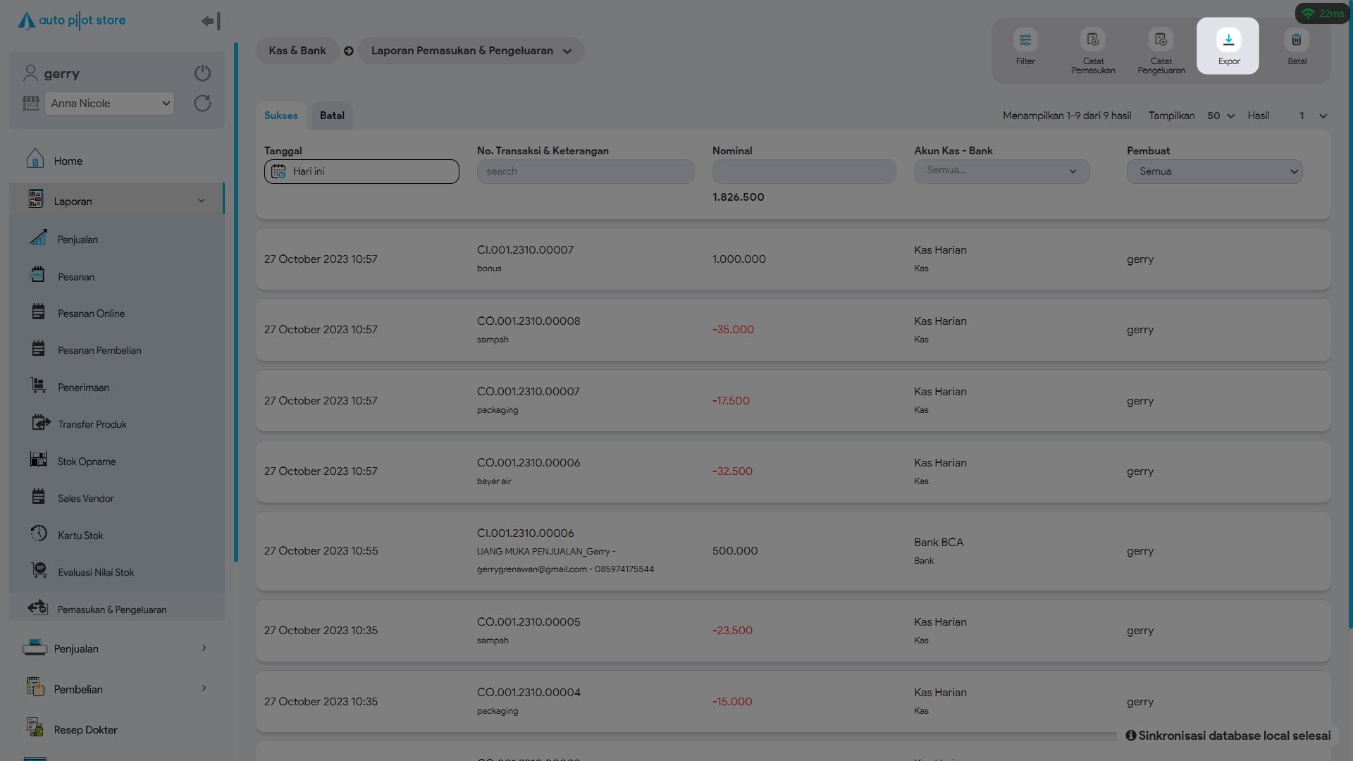 6. Pilih Ekspor bila ingin melakukan ekspor data pemasukan dan pengeluaran ke format Excel