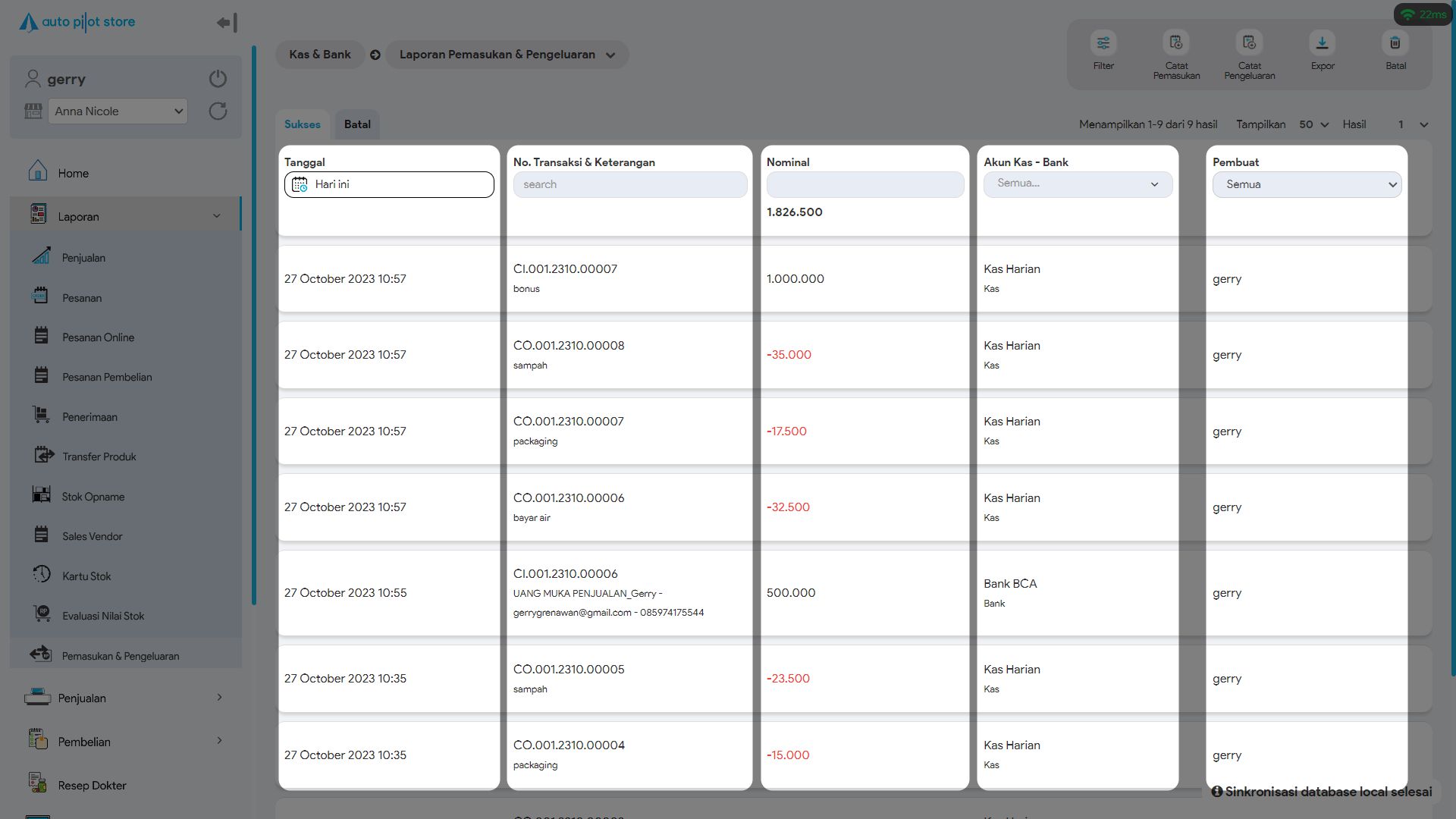 5. Laporan Pemasukan & Pengeluaran menyajikan informasi: