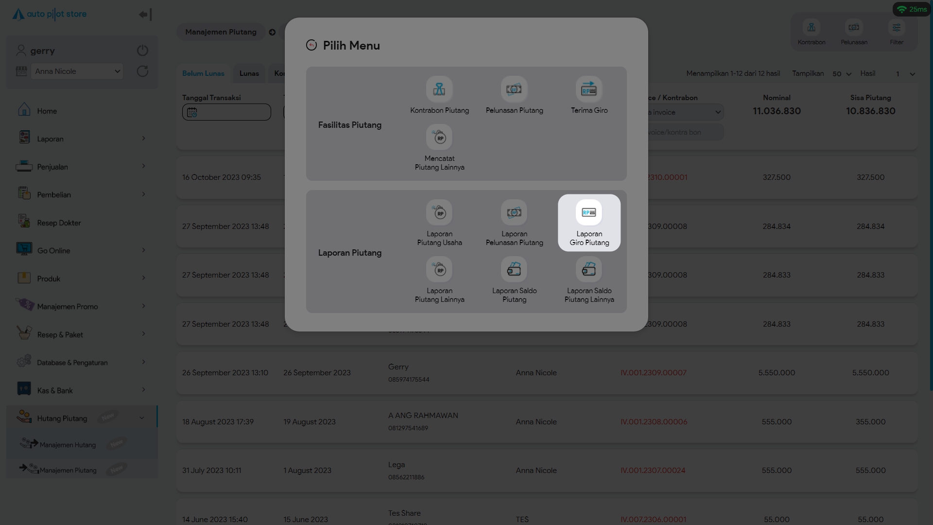 4. Pilih menu Laporan Giro Piutang