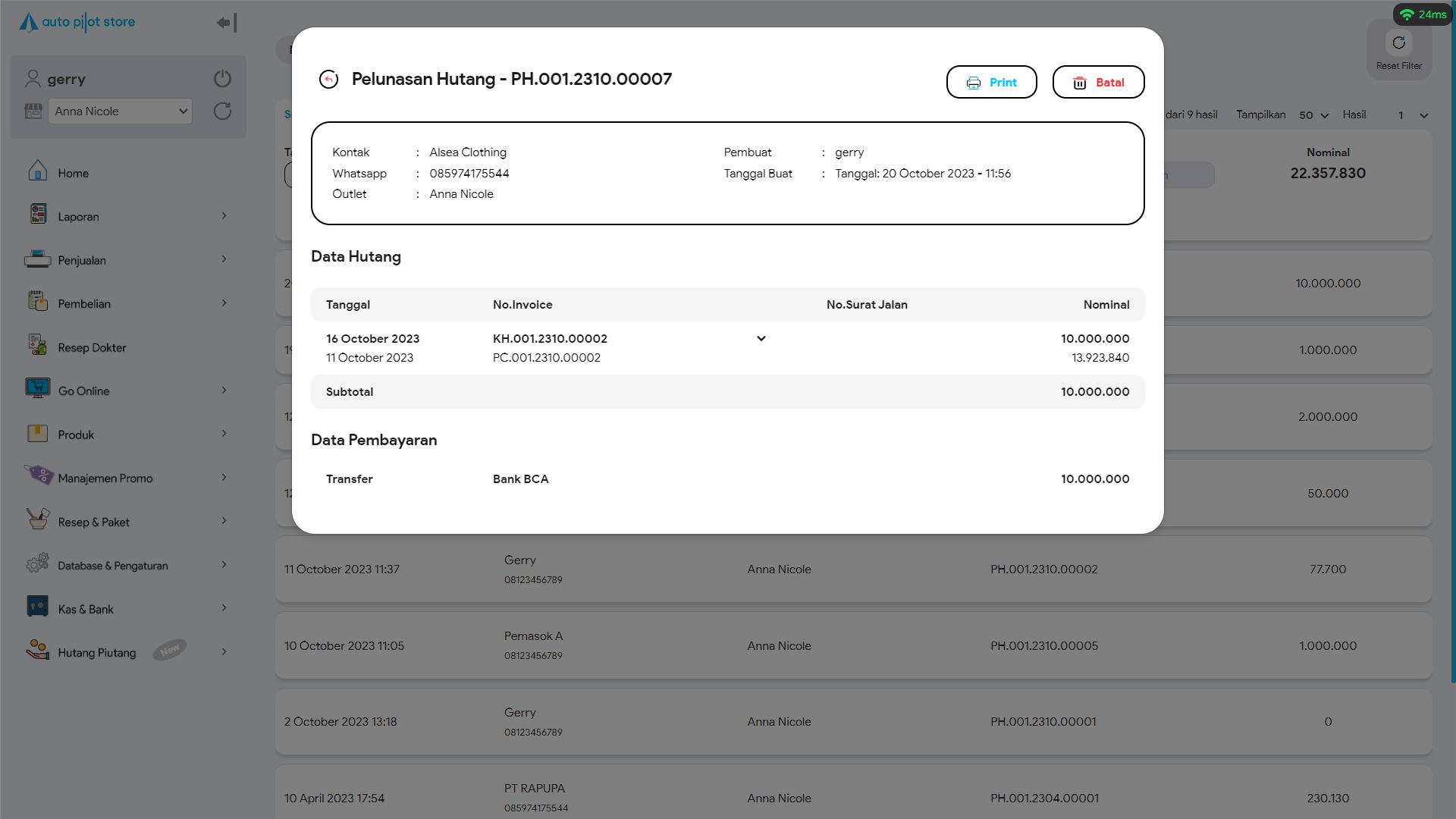 8. Pilih transaksi pelunasan yang diinginkan untuk melihat informasi pelunasan yang lebih detail