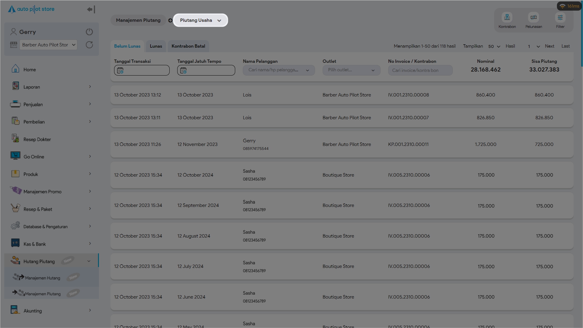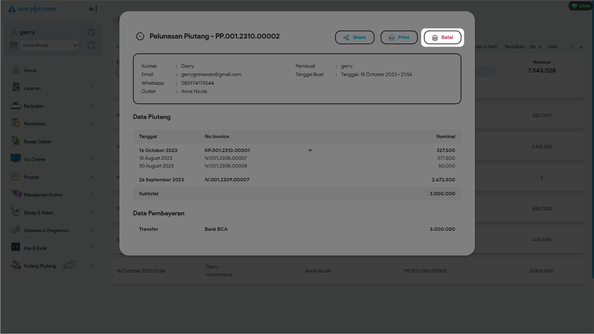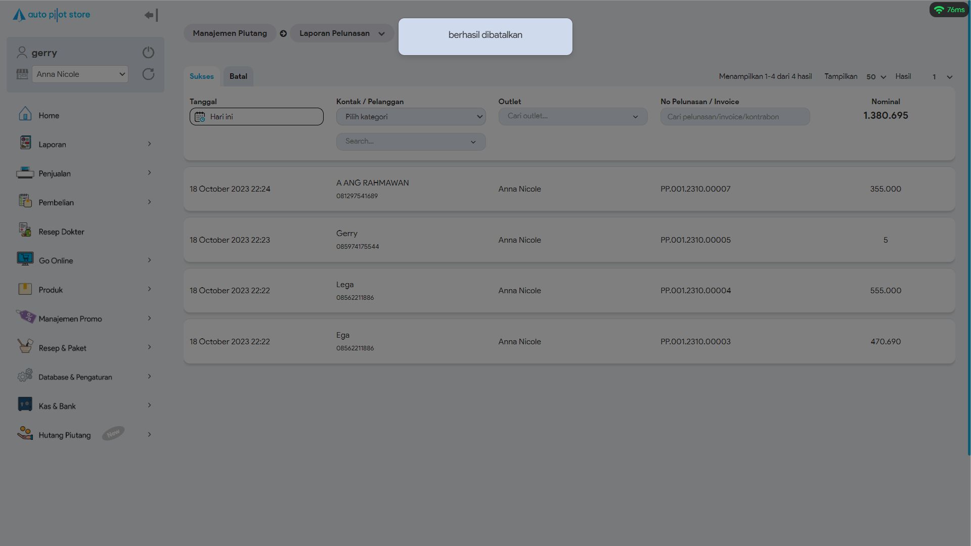 5. Pilih pelunasan piutang yang ingin dibatalkan