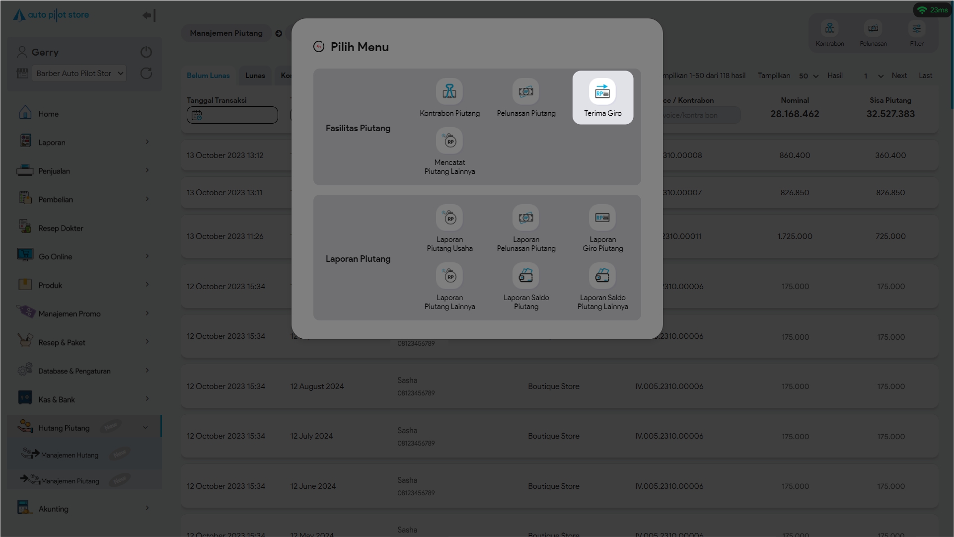 2. Pilih Sub Menu Manajemen Piutang