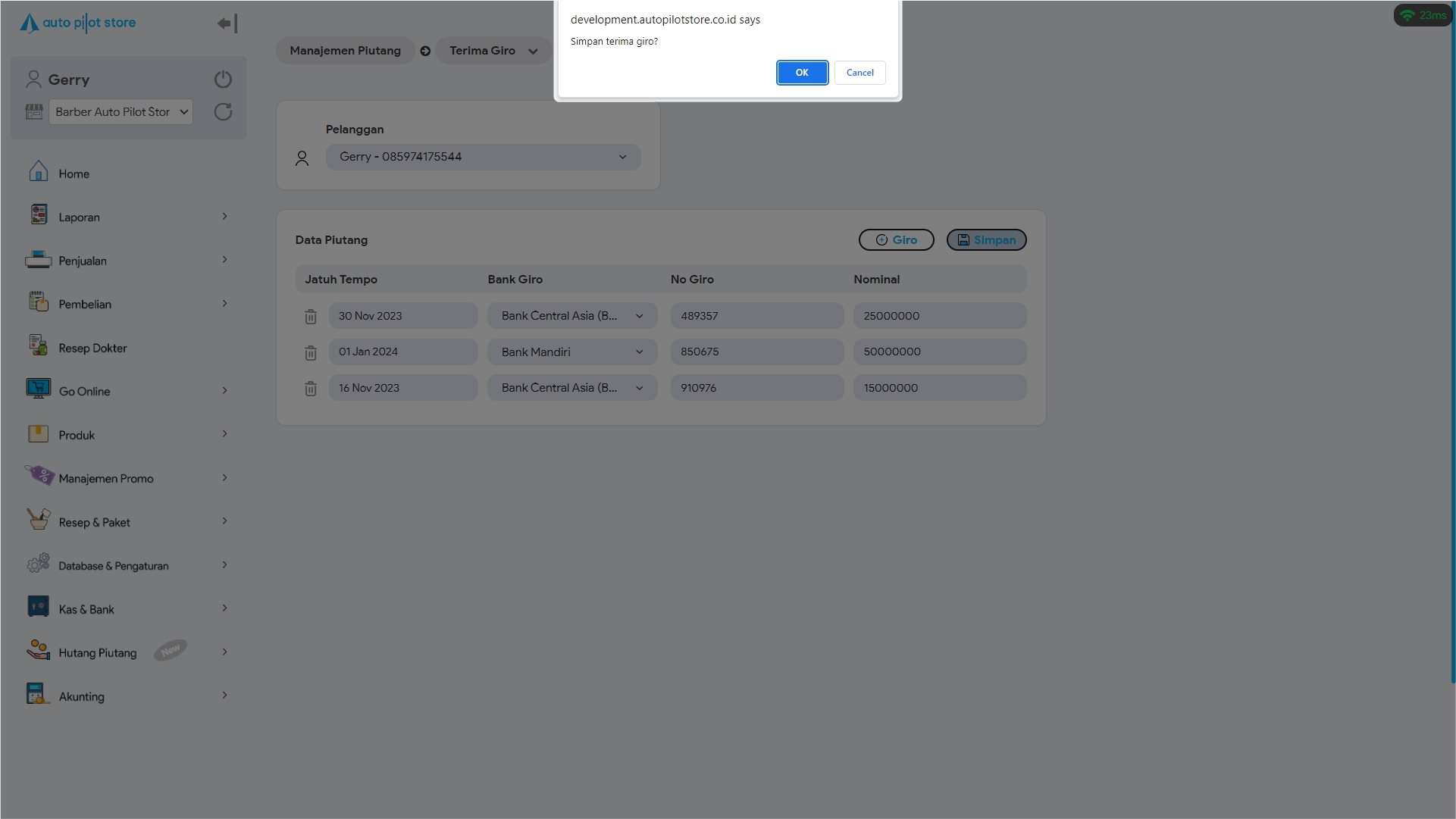 4. Pilih Terima Giro