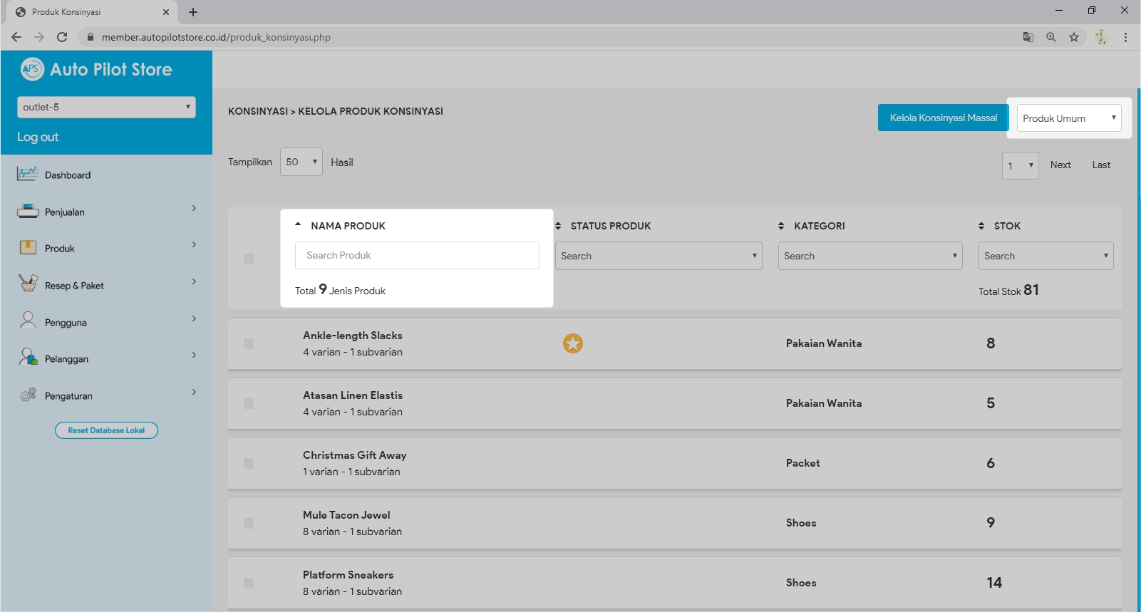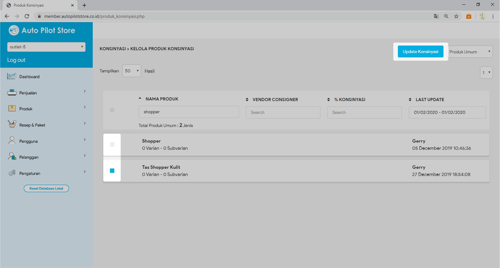 2. Pilih Sub Menu Kelola Produk Konsinyasi