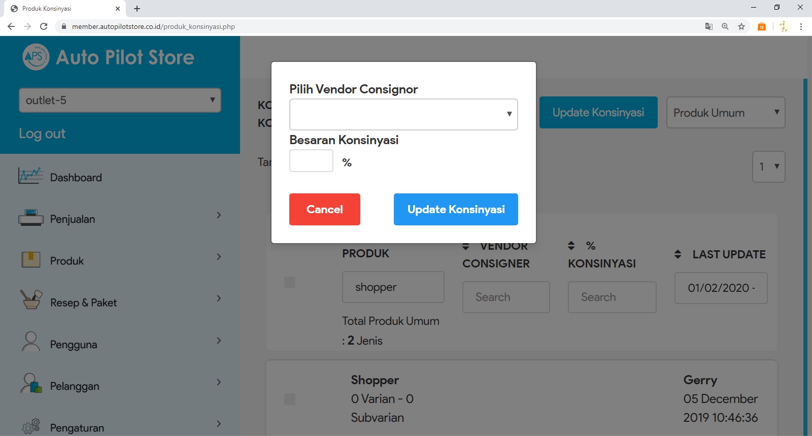 7. Pilih nama Vendor Consignor dan isi Besaran Konsinyasi produk tersebut
