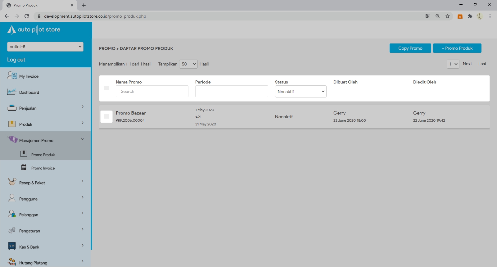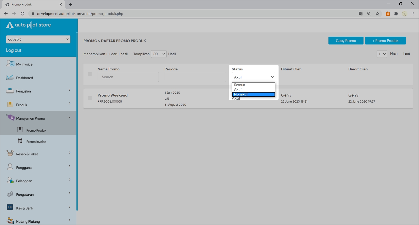 4. Cari nama promo yang akan diaktifkan pada kolom pencarian
