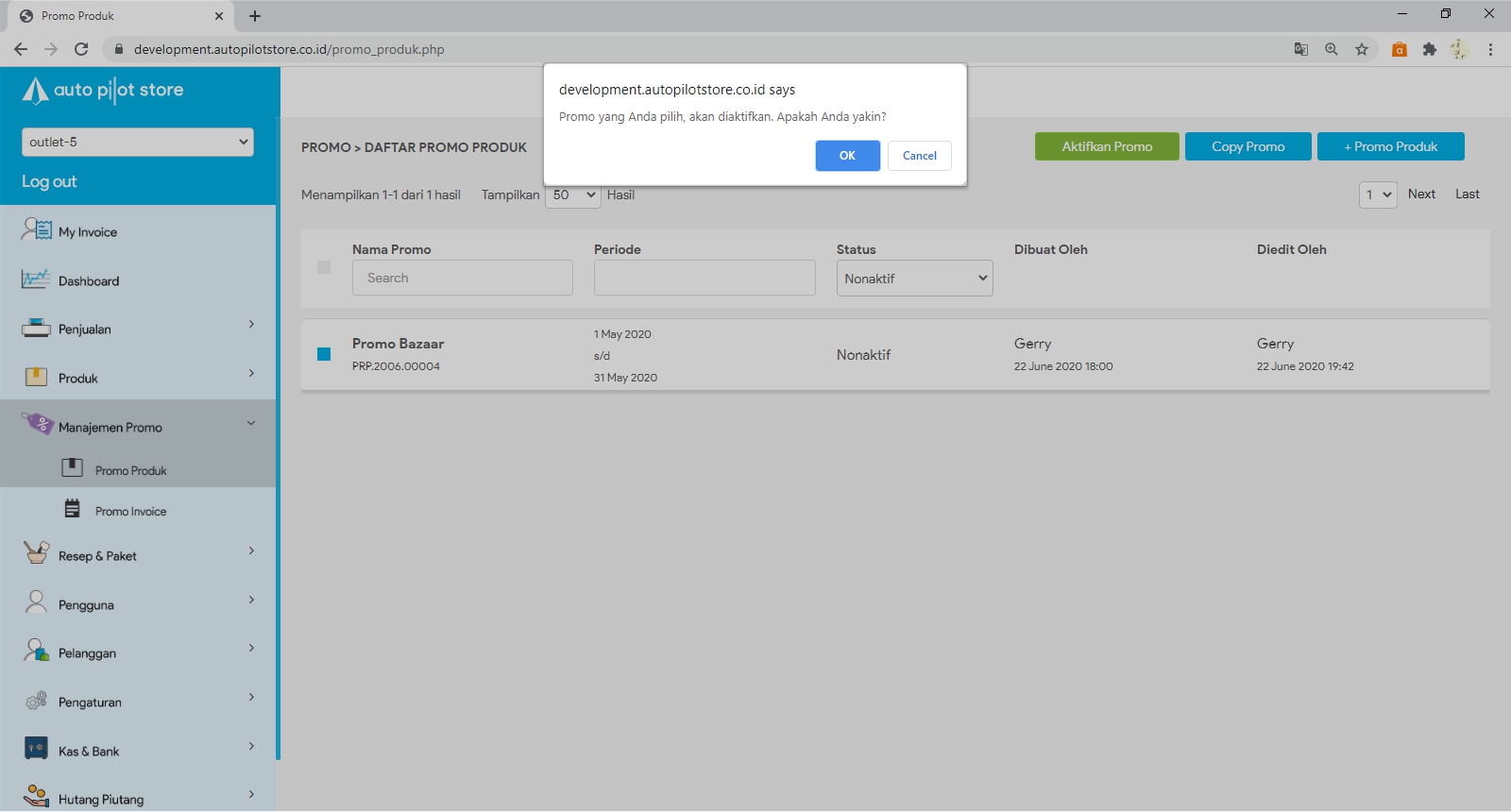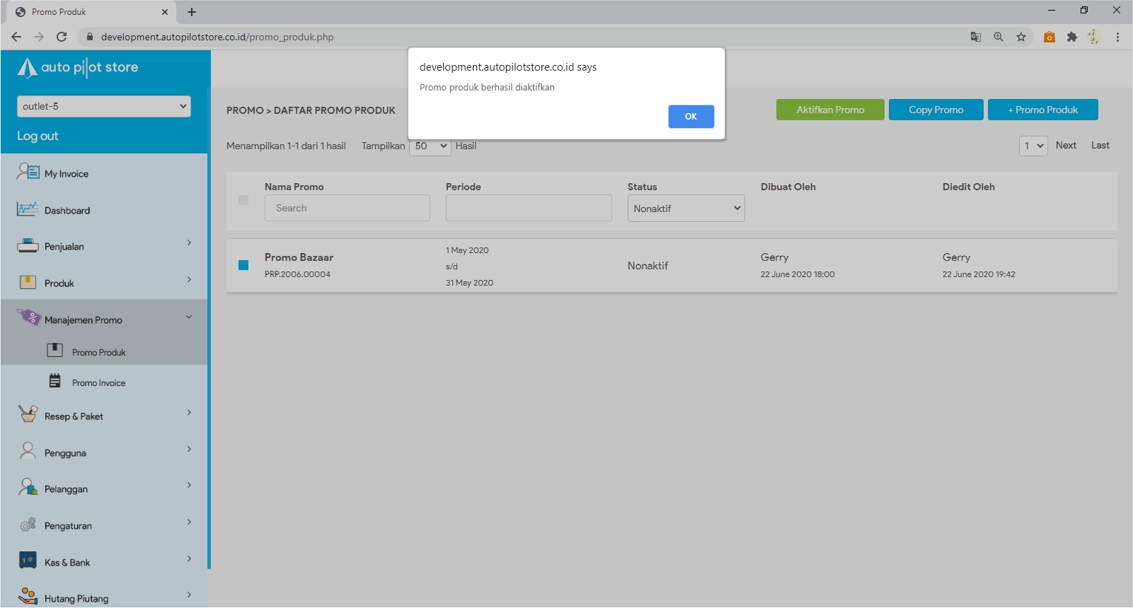 8. Promo berhasil di aktifkan kembali