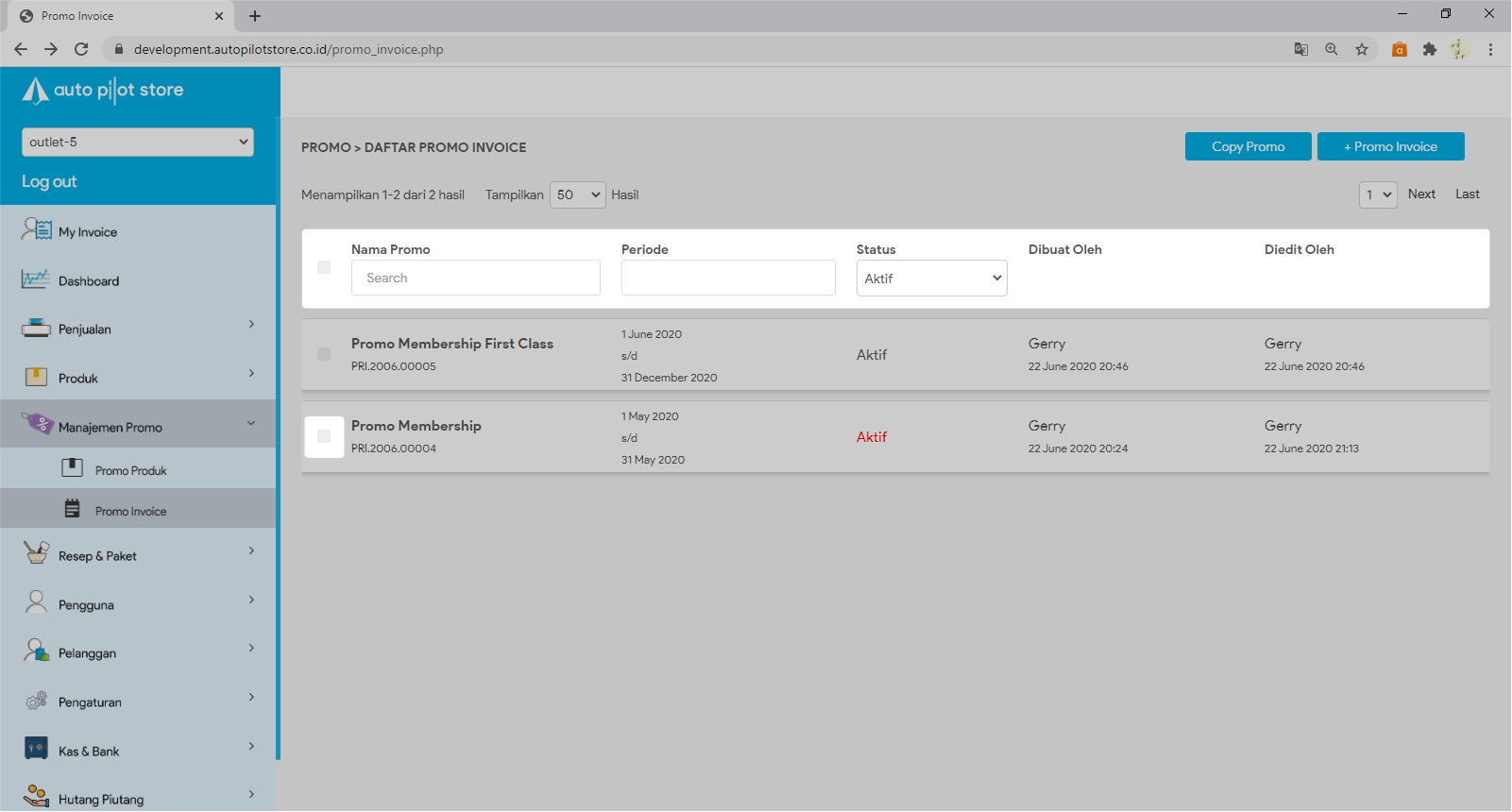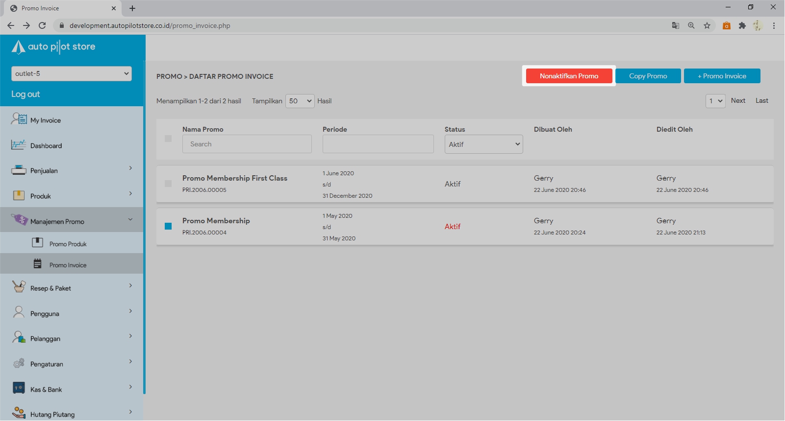 Catatan: Promo yang sudah habis masa berlaku nya, status keaktifan nya akan berwarna merah. Anda dapat menonaktifkan promo tersebut dengan cara: