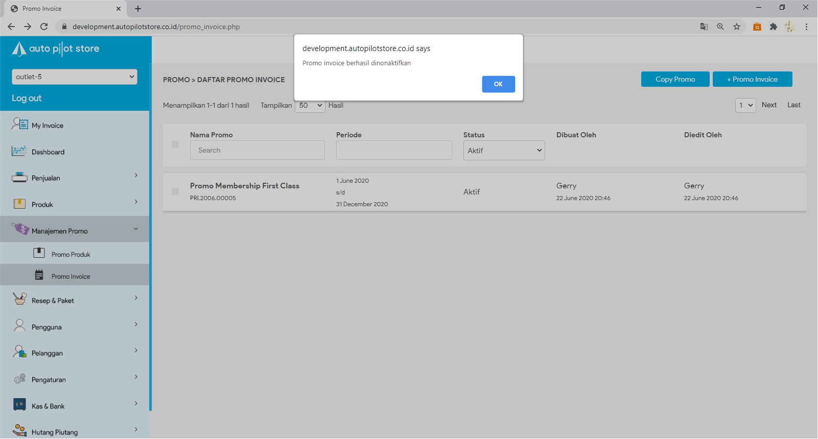 7. Promo berhasil di non aktifkan