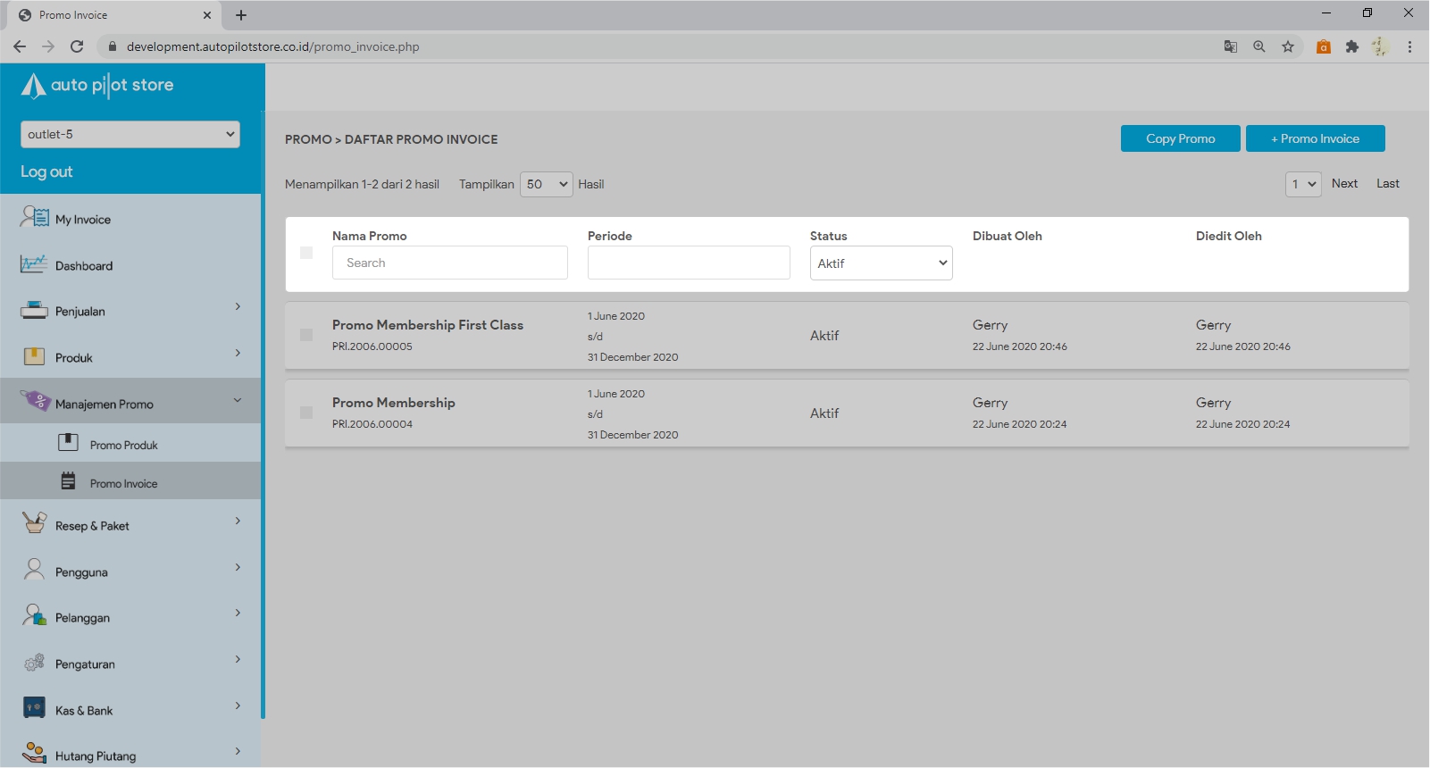 2. Pilih Sub Menu Promo Invoice