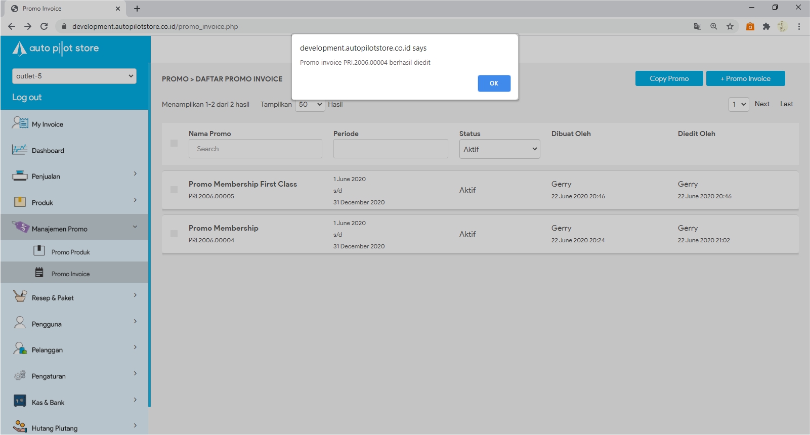 8. Pengeditan promo berhasil